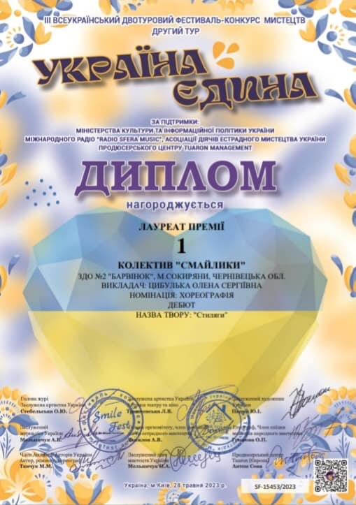 Вихованці закладу дошкільної освіти №2 «Барвінок» міста Сокиряни взяли участь у фестивалі «Смайл Фест», який проходив на всеукраїнському рівні у дистанційному форматі.