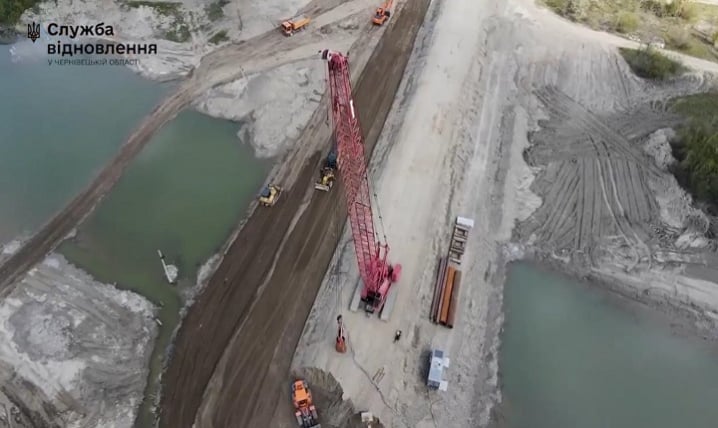 Мостобудівники завершують влаштовувати опори для тимчасової переправи. Крім того, на об’єкті працює бурова техніка – триває зведення підпірної стінки, яка укріпить берег річки Прут з боку села Глиниці.