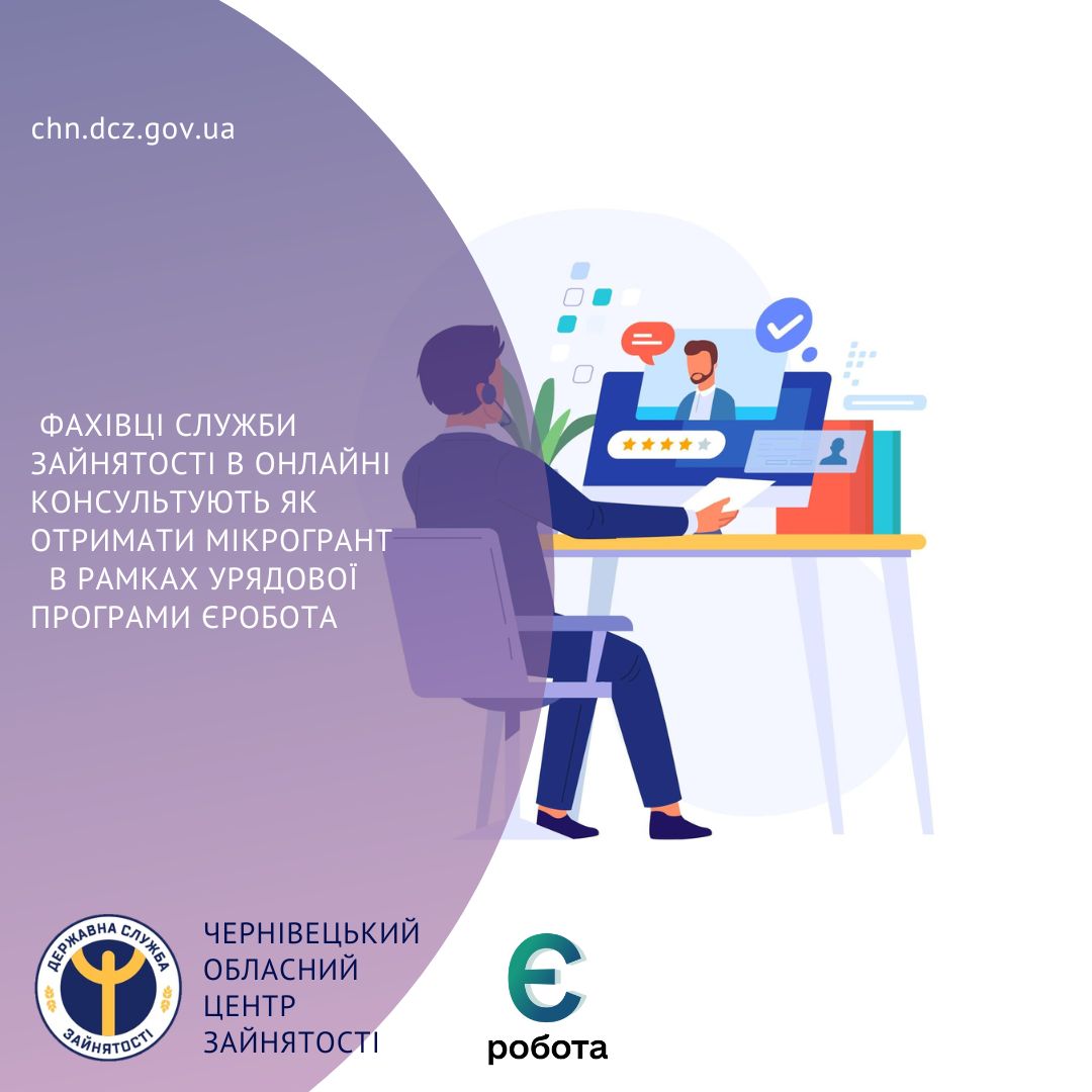Фахівці Чернівецького обласного центру зайнятості в онлайні проводять консультування всіх бажаючих отримати мігрогрант в рамках урядової програми єРобота «Власна справа» та «Грант для ветеранів».