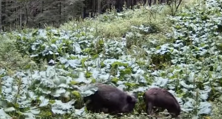 Лісівники на Буковині зафільмували сім’ю диких кабанів, які шукали їжу – відео