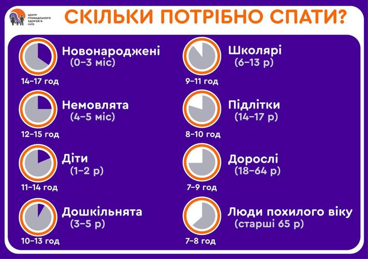 Національний фонд сну (National Sleep Foundation) дає наступні рекомендації щодо кількості сну за віком: