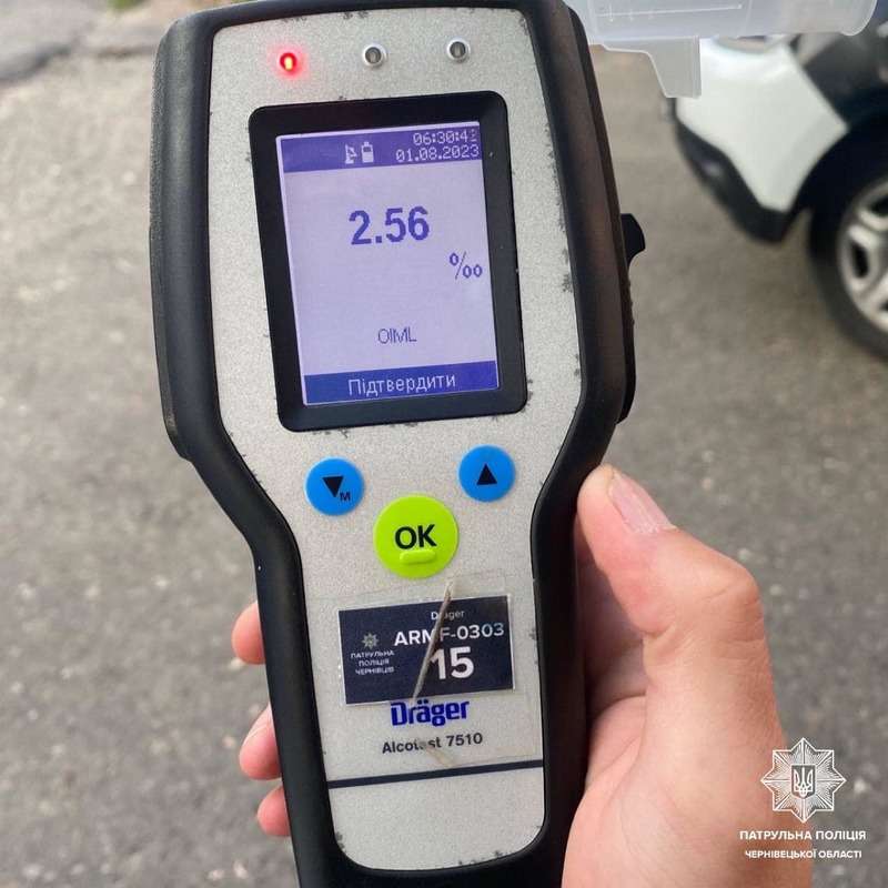Під час спілкування з керманичем інспектори помітили, що у нього присутні характерні ознаки алкогольного сп’яніння. Водій погодився пройти огляд на стан сп’яніння на місці зупинки. Результат позитивний — 2,56 проміле. Про це повідомляє патрульна поліція Чернівецької області.