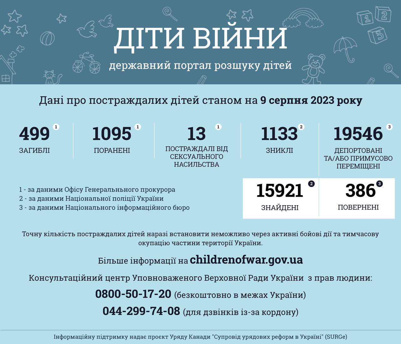 Через повномасштабну війну росії проти України загинули 499 дітей. Ще 1095 отримали поранення.