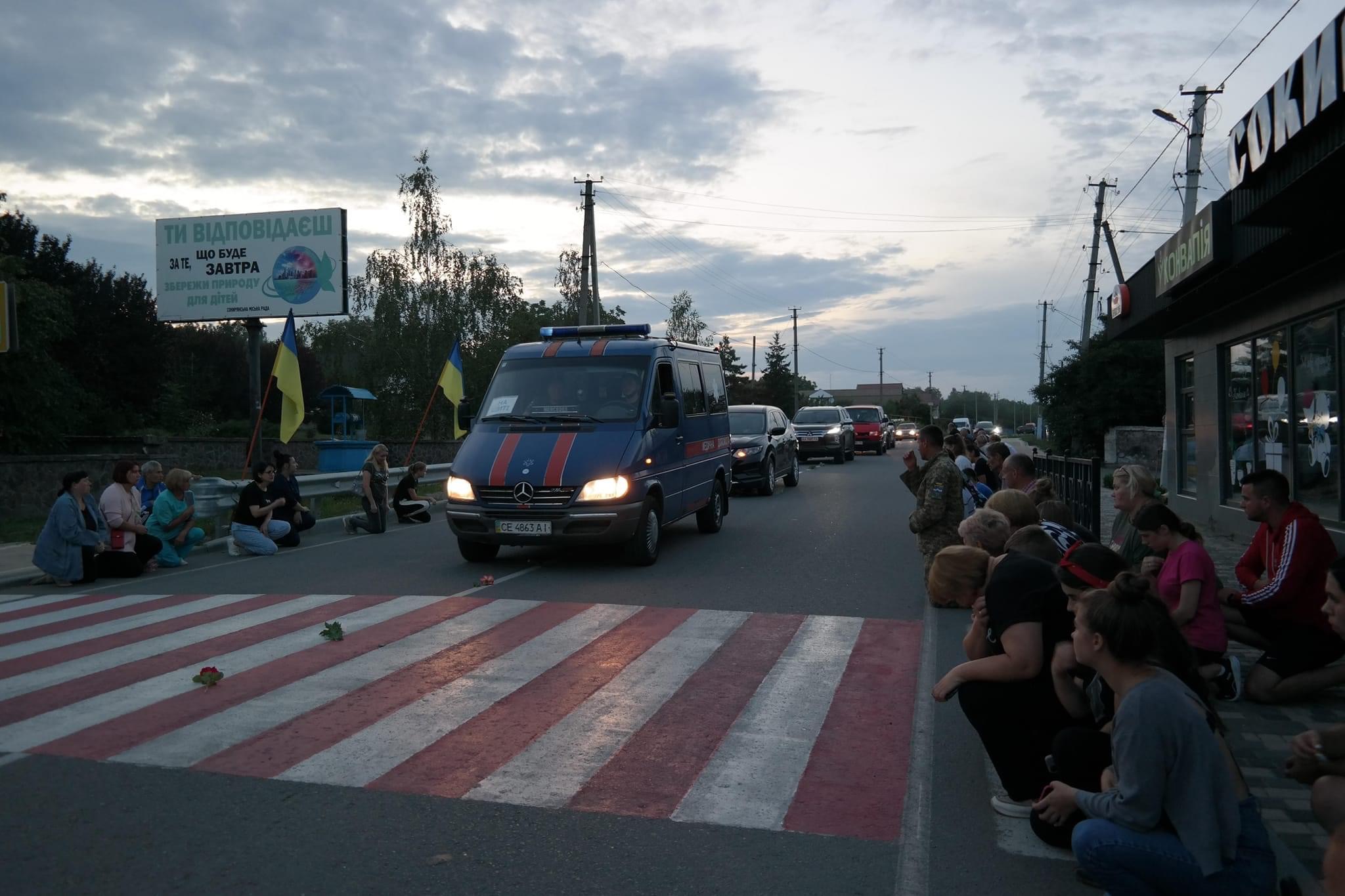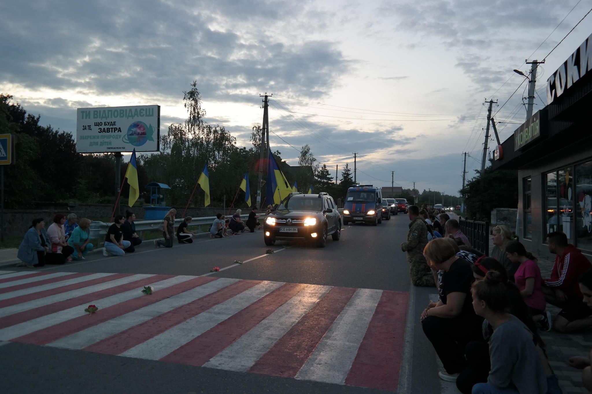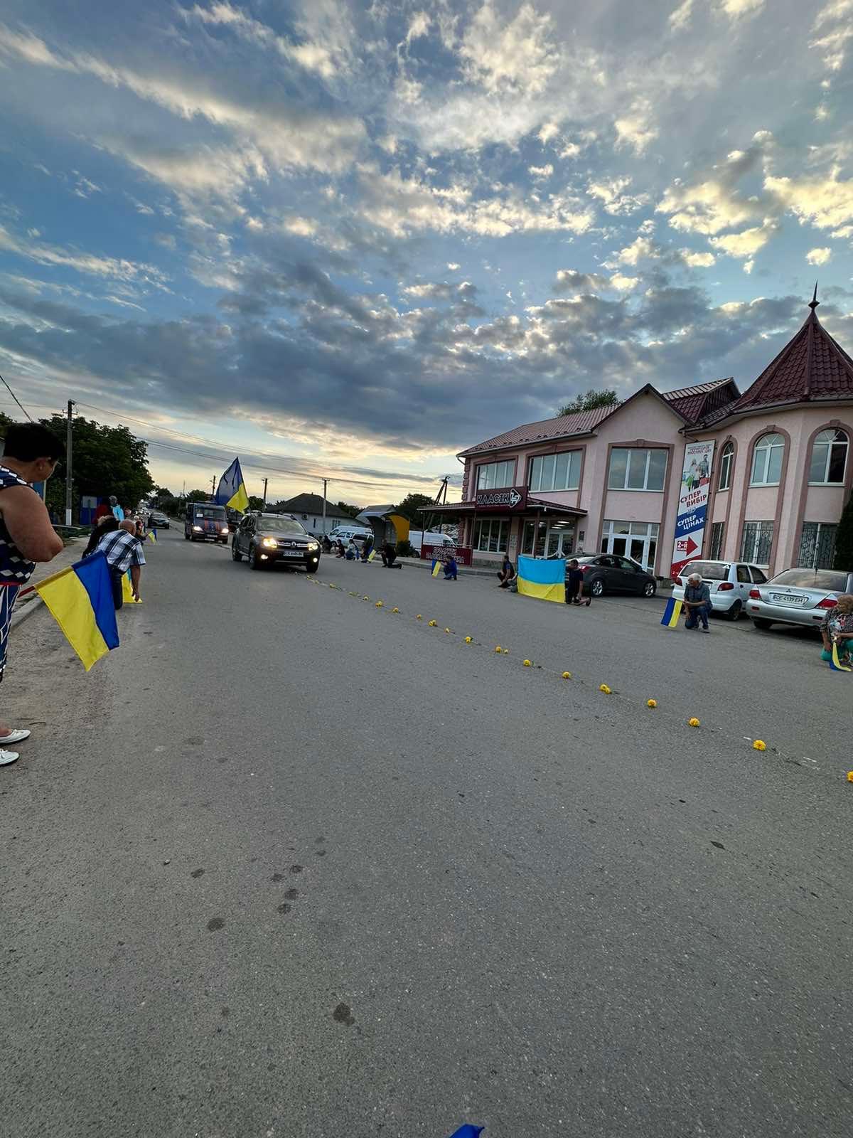 З безмежною вдячністю та глибокою скорботою, з живими квітами та прапорами, стоячи навколішки, жителі громади зустрічали траурну колону вздовж автошляхів краю.