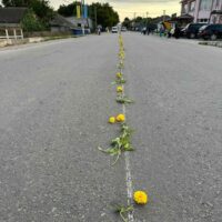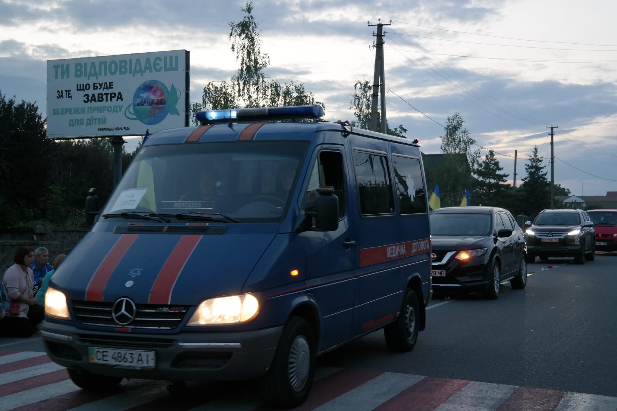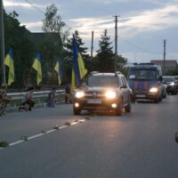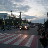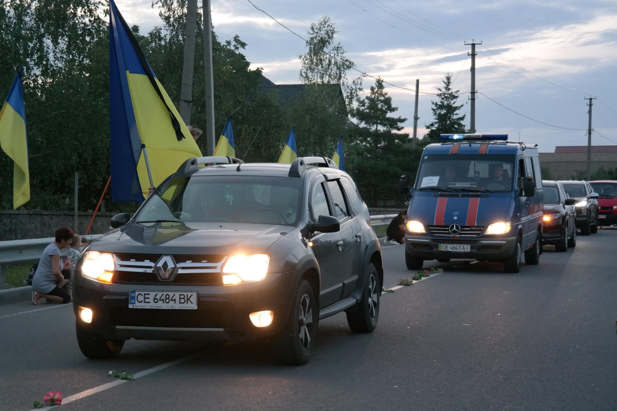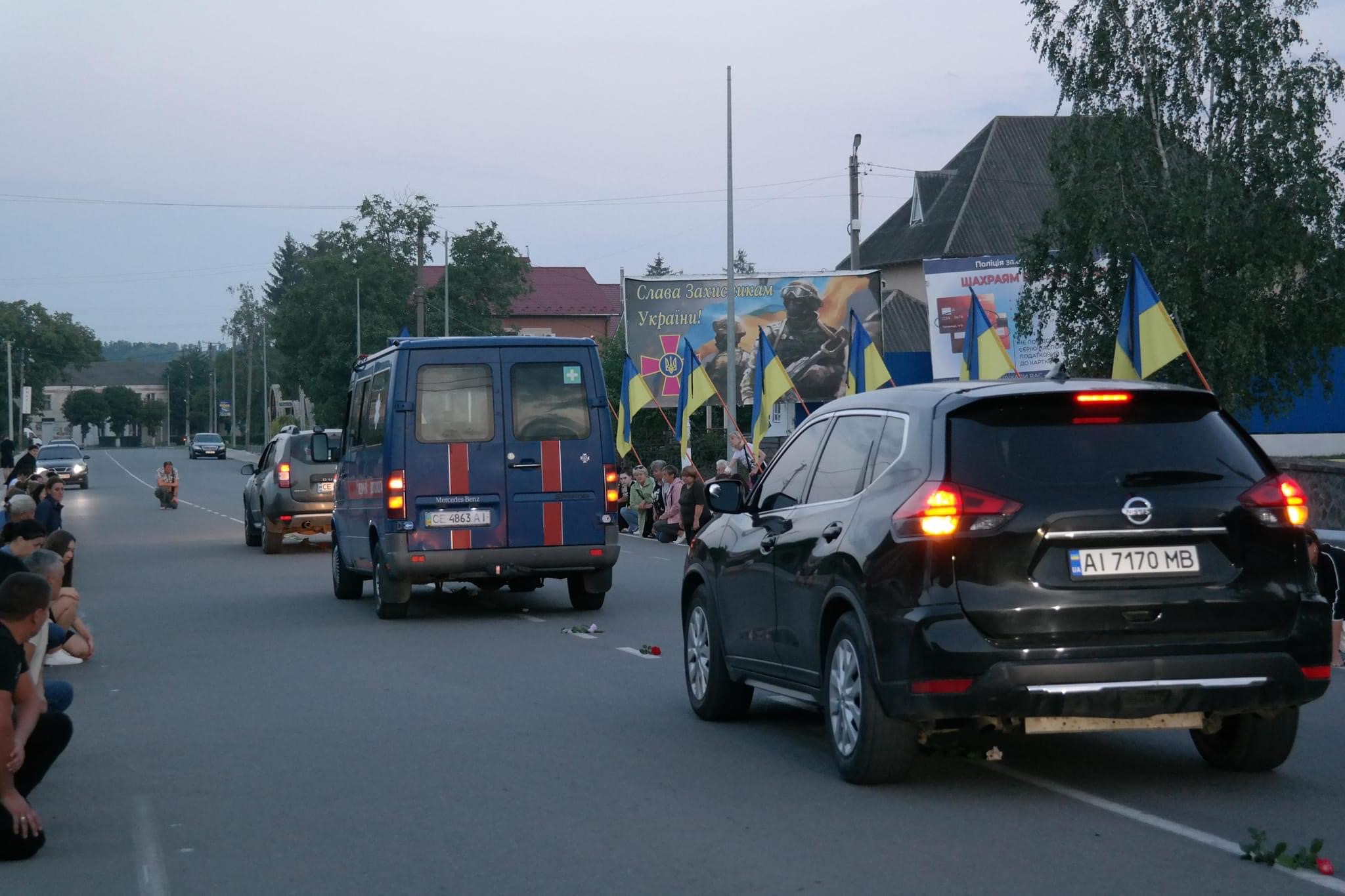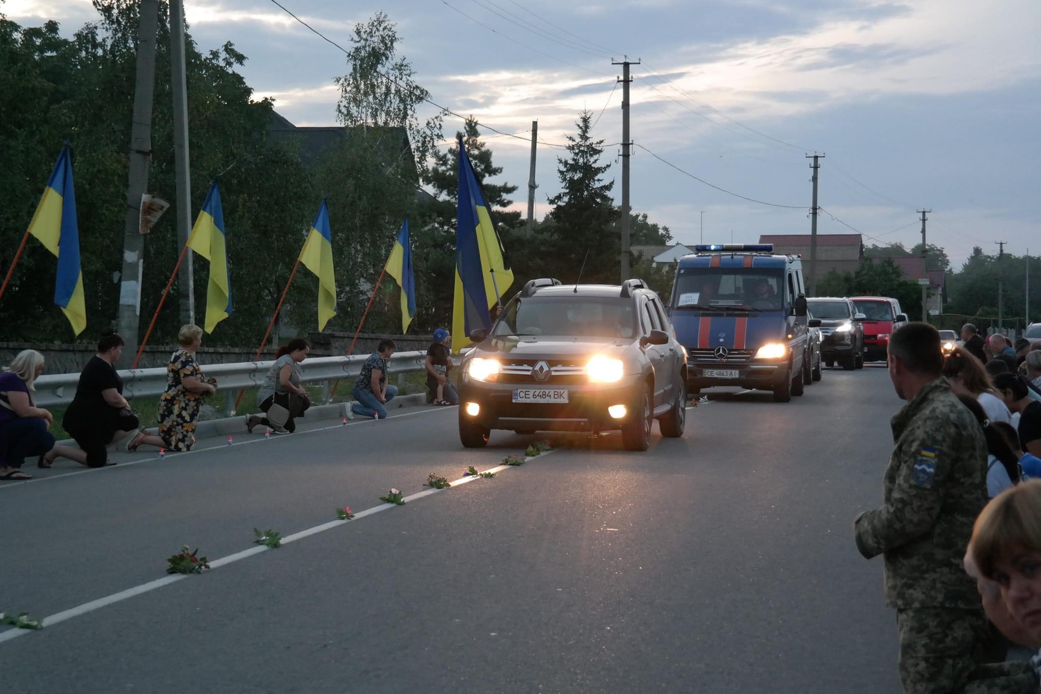 З безмежною вдячністю та глибокою скорботою, з живими квітами та прапорами, стоячи навколішки, жителі громади зустрічали траурну колону вздовж автошляхів краю.