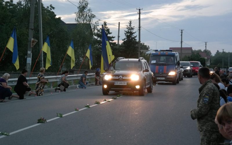 “На рідну сокирянську землю доставили тіло полеглого захисника України Андрія Бабінського. З безмежною вдячністю та глибокою скорботою, з живими квітами та прапорами, стоячи навколішки, жителі громади зустрічали траурну колону вздовж автошляхів краю.