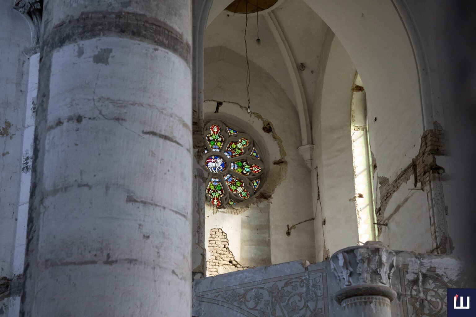 Там ми зустріли трьох представників костелу. Вони побажали залишитися неназваними. Один із них розповів, що реставраційні роботи в храмі не проводять. На це є дві причини: війна та відсутність коштів.