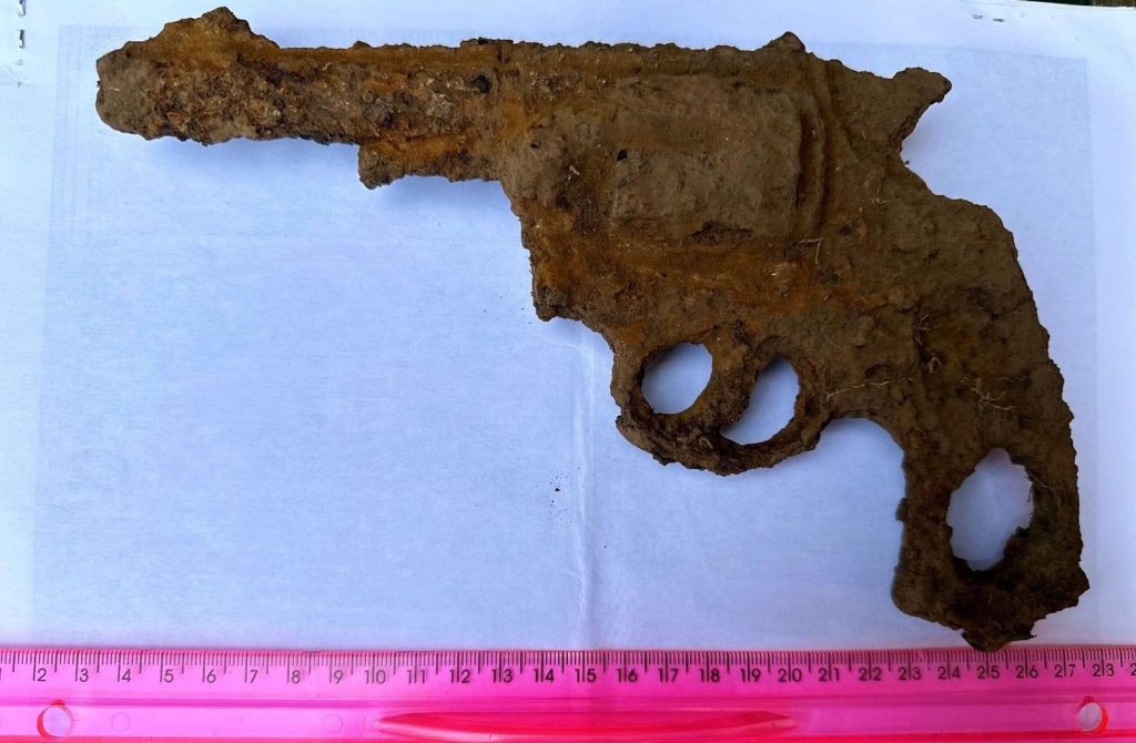 Револьвер довго пролежав у землі, від того сильно покрився іржею. Попередньо його датовано ХІХ-початком ХХ століття.