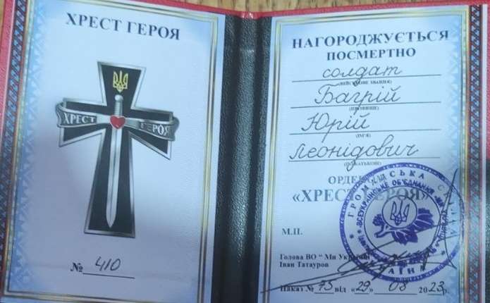Жителя міста Сокиряни Юрія Леонідовича Багрія посмертно відзначено орденом «Хрест Героя» громадської спілки «Всеукраїнське об’єднання Ми Українці». Про це повідомляє Сокирянська міська рада.