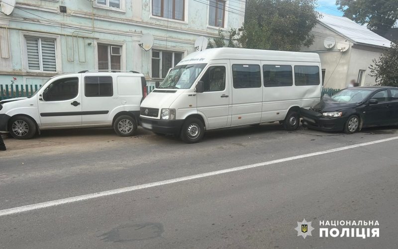 70-річний водій автомобіля “Mitsubishi Lancer” зіткнувся з припаркованим авто “Volkswagen LT” під керуванням 60-річного жителя села Нові Бросківці. Який, у свою чергу, зіштовхнувся з авто “Fiat”, яким кермував 27-річний чернівчанин.