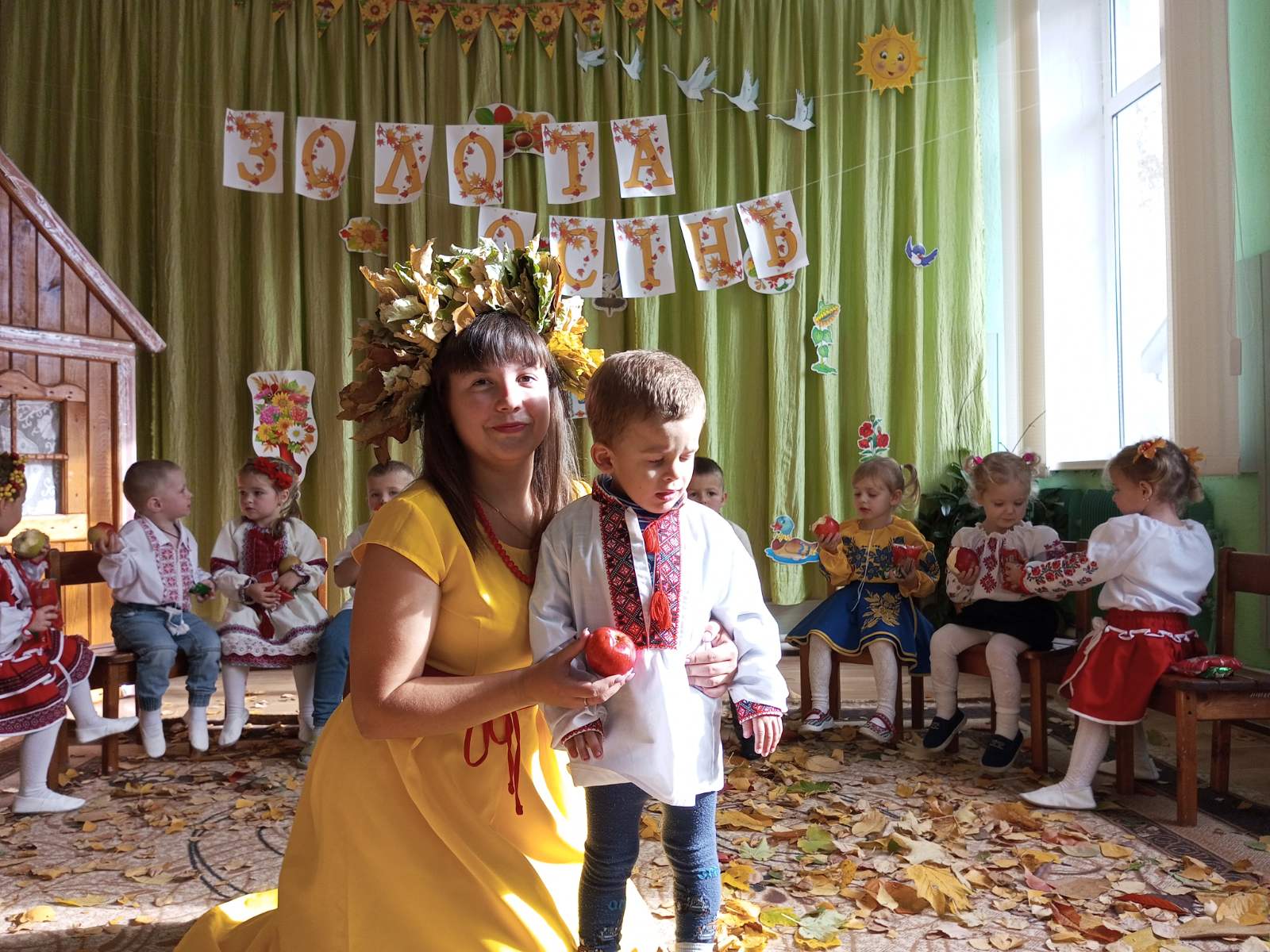 Осінь звичайно прийшла до дітлахів з осінніми подарунками: запашними яблуками та солодощами частувала дітлахів.