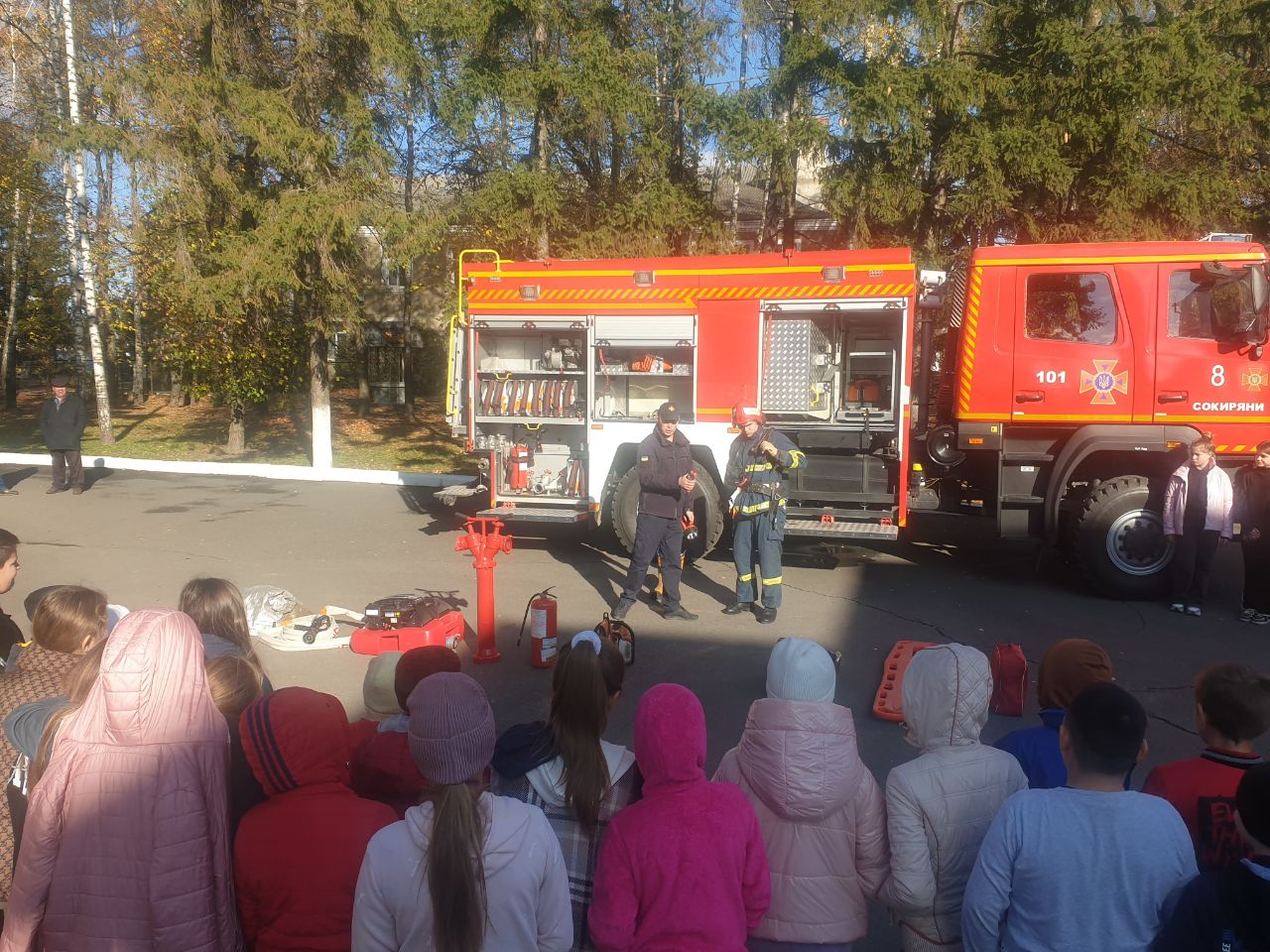Під час зустрічі з вихованцями навчального закладу провели бесіди на тему безпеки, пізнавальні уроки для школярів, демонстрацією пожежної техніки — все це фахівці Служби порятунку організували для учнів.