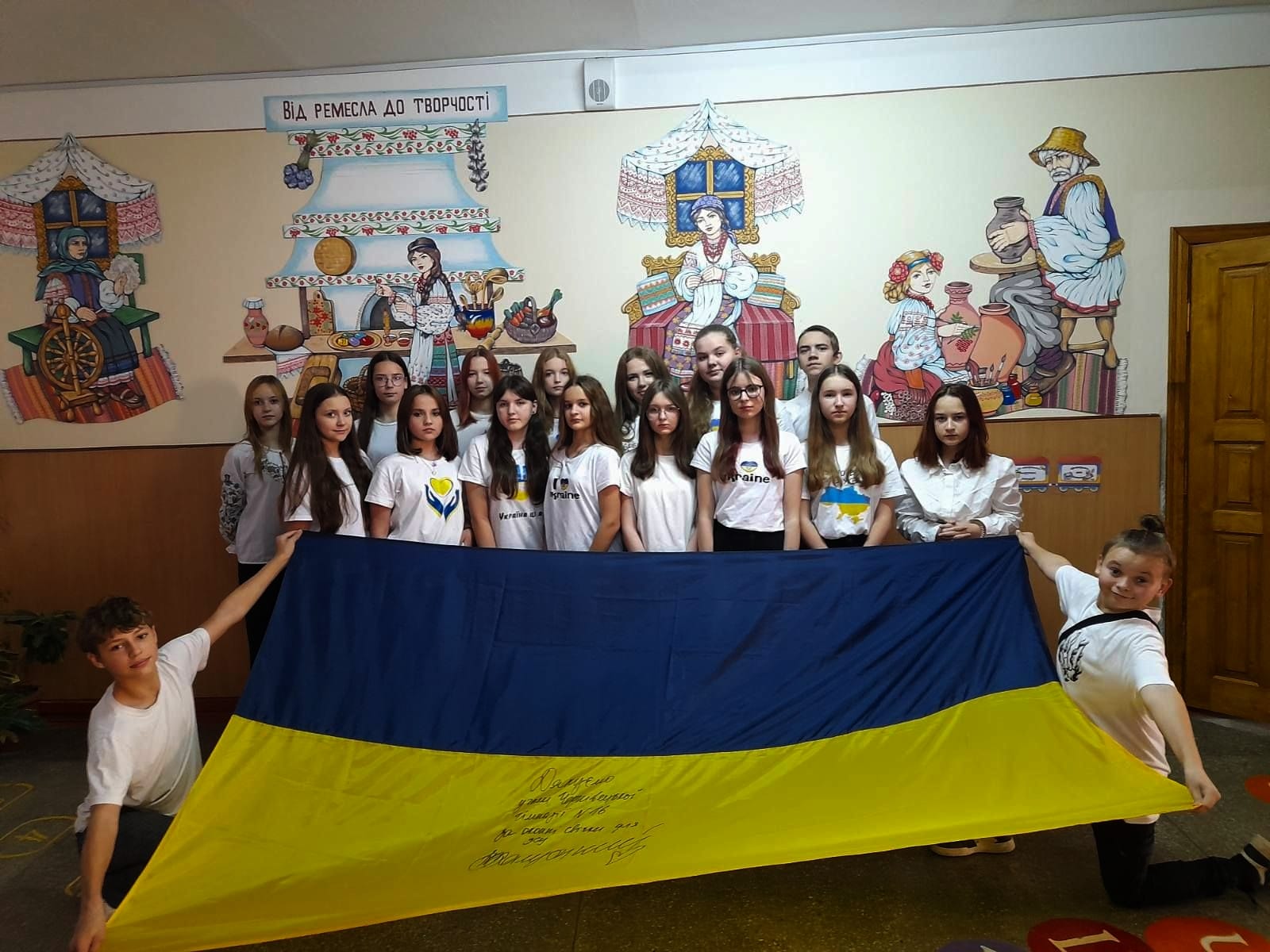 Такий подарунок працівники закладу, гімназисти, їхні батьки отримали за волонтерську допомогу українській армії. Ліцей отримав прапора України з підписом і подякою учням та працівникам закладу.