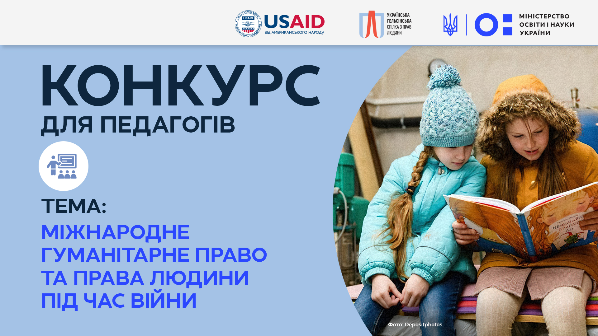 Міністерство освіти і науки України спільно з Українською гельсінською спілкою з прав людини організовує Всеукраїнський конкурс навчально-методичних матеріалів із міжнародного гуманітарного права та прав людини в умовах збройного конфлікту для педагогів та Всеукраїнський конкурс учнівських робіт із теми «Права людини та права дитини в умовах війни».