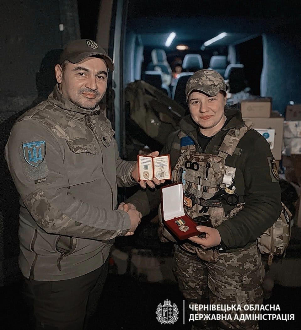 Відзнакою нагороджена медикиня та колишня медикиня Чернівецького національно університету Олександра Шкварчук. Зараз вона разом з побратимами перебуває в Авдіївці. У квітні минулого року дівчина ще студенткою добровільно вступила до батальйону «Госпітальєри». Згодом була мобілізована до ЗСУ.