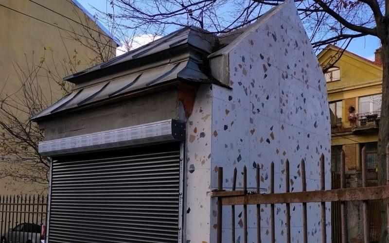 “Я не знаю першочергової функції цих невеликих споруд, але вона і неважлива: наразі ж вигляд однієї з них зіпсований — як плиткою, так і ролетами. Особливо неприємною ця ситуація є через те, що за 10 метрів звідти ліцей №5 проводить реставрацію трішечки старішої огорожі та реконструкцію внутрішнього дворика. Таким чином, навколишній простір зовсім скоро виглядатиме чудово, а цей МАФ псуватиме середовище”, – із жалем констатує автор допису.
