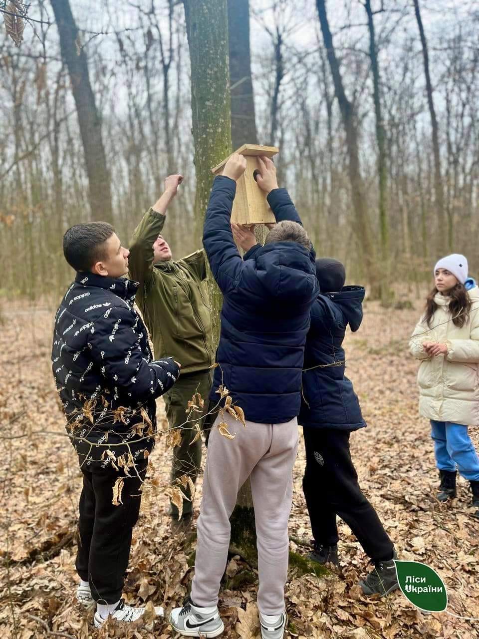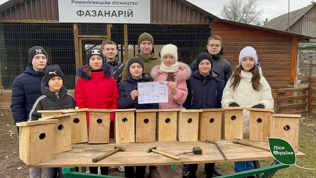 Лісівники з вихованцями учнівського лісницта Романківецької гімназії уже виготовили та влаштували у лісі перших 30 шпаківень.