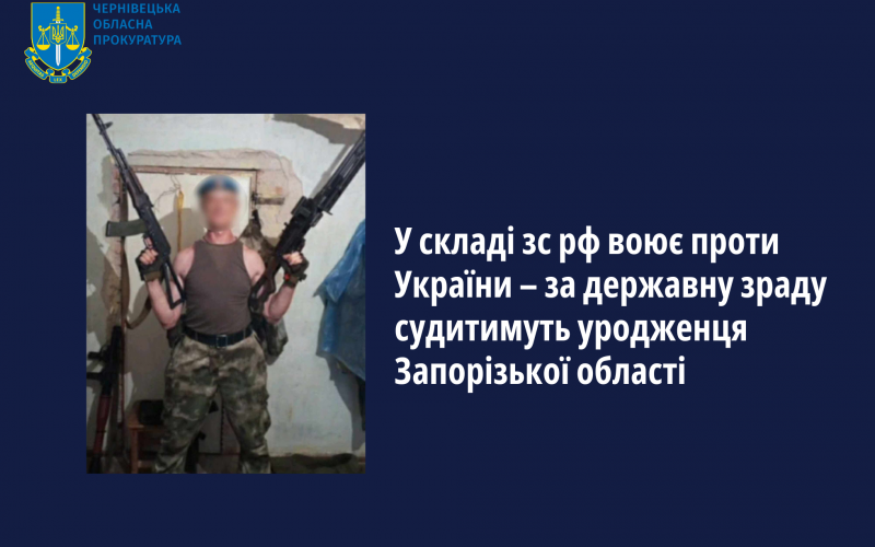 Прокурори Чернівецької обласної прокуратури передали до суду обвинувальний акт стосовно 43-річного уродженця Запорізької області за фактом державної зради (ч. 2 ст. 111 КК України).