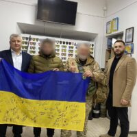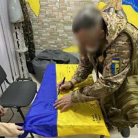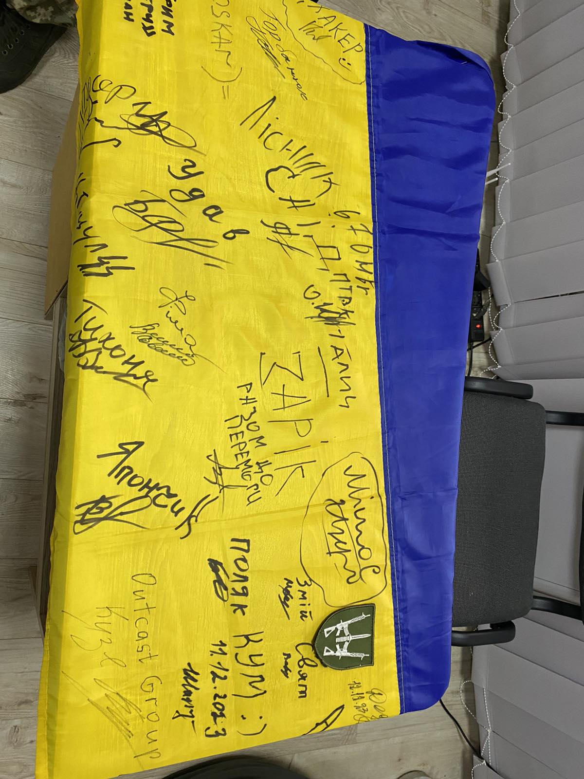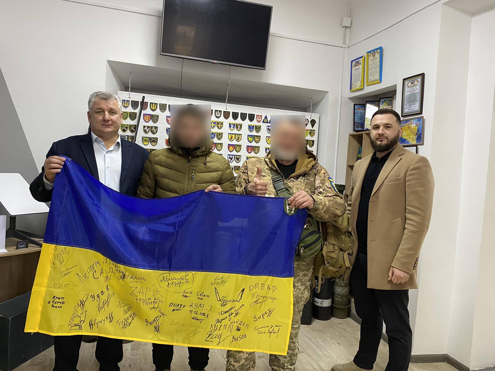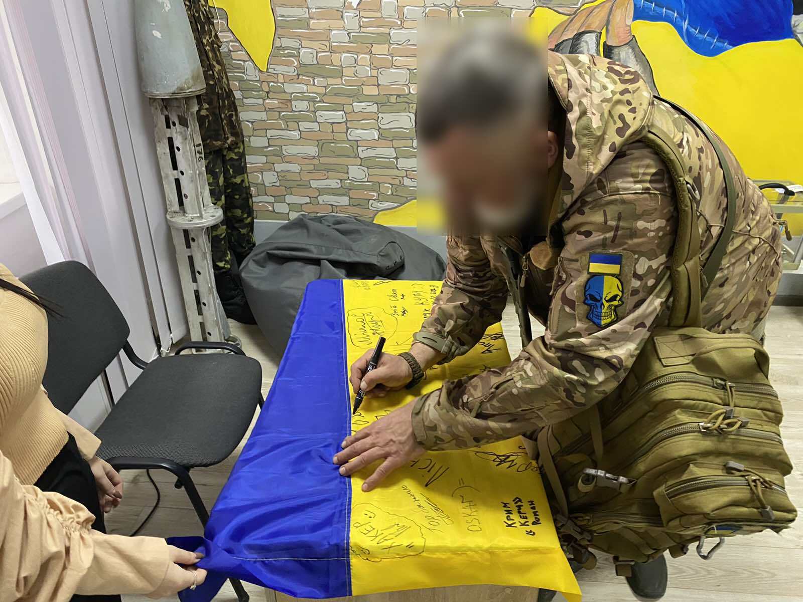 Військовий, якому спрямовано авто та який проходить службу у лавах ЗСУ з листопада 2022 року, передав Сокирянській міській територіальній громаді подарунок – прапор з підписами військових. Цінний експонат буде зберігатись в музеї пам’яті подій російсько-української війни в місті Сокиряни.