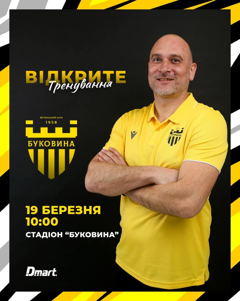«Вже незабаром стартує весняна частина сезону у Першій лізі. З цієї нагоди футбольний клуб «Буковина» проведе відкрите тренування, на яке запрошуємо не тільки представників ЗМІ, а й усіх охочі вболівальників чернівецького клубу», – йдеться в повідомленні.