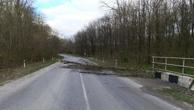 "За останню добу пориви вітру призвели до неодноразового падіння дерев та гілля на проїжджу частину автошляхів державного значення Тернопільської області. Служба відновлення у співпраці з поліцією та громадянами оперативно організувала прибирання перешкод з доріг та відновила повноцінний рух транспорту", – йдеться у повідомленні.