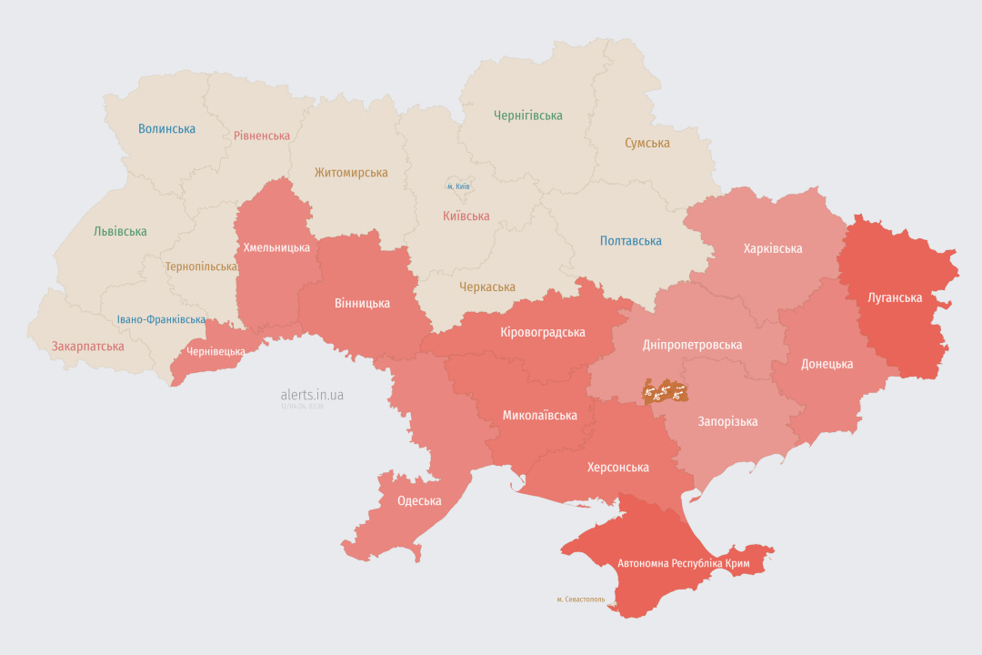 Війська РФ запустили по території України дрони-камікадзе типу "Шахед". Ввечері, 11 квітня, було оголошено повітряну тривогу у низці областей.