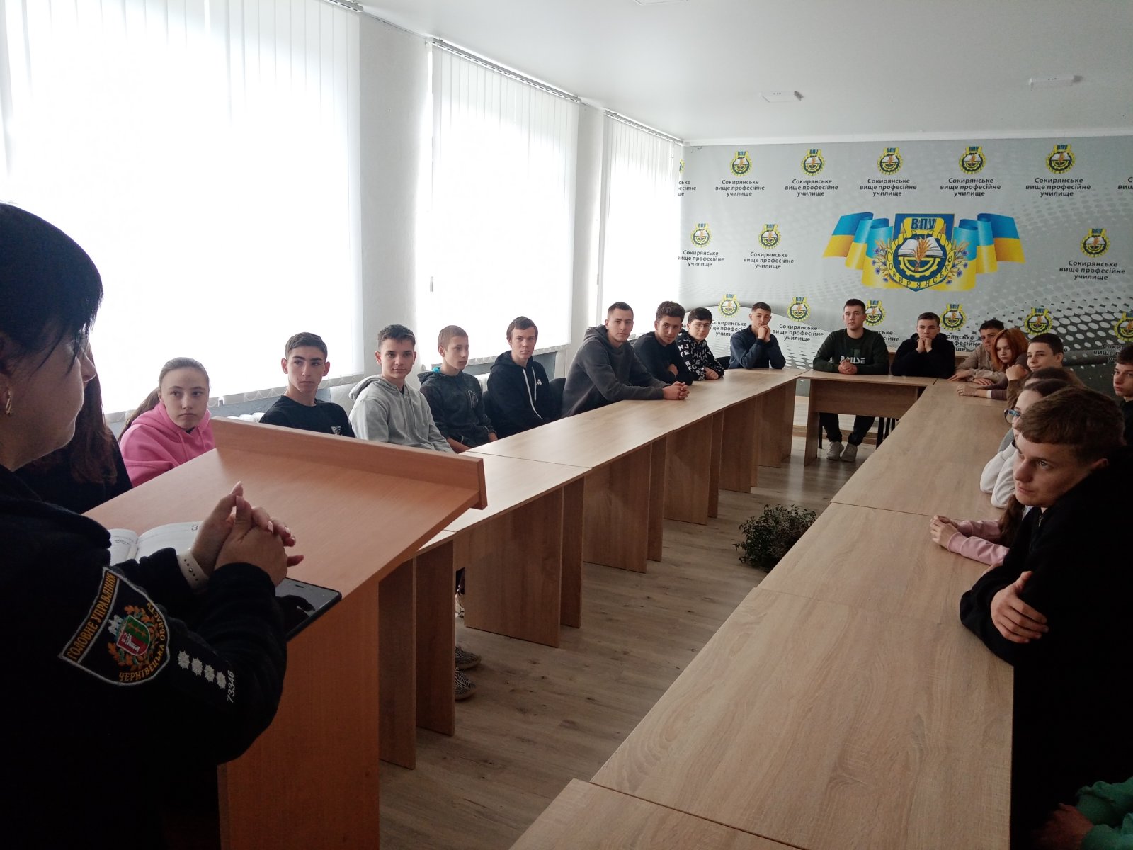 Відтак, в межах проведення Тижня безпеки, правоохоронці –  поліцейський офіцер громади, капітан поліції Костянтин Пилипчук та інспектор сектору ювенальної превенції Дністровського РВП ГУНР в Чернівецькій області, капітан поліції Ірина Мігалескул поспілкувалися із учнями Сокирянського вищого професійного училища.