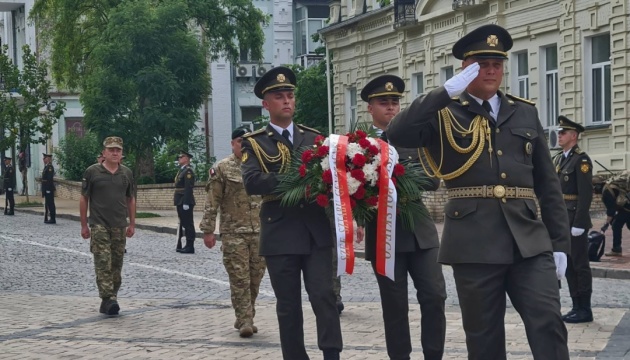 Złożeniem wiązanki kwiatów przy Ścianie Pamięci Poległym za Ukrainę generał Wiesław Kukuła, szef @SztabGenWP 🇵🇱 rozpoczął robocze spotkanie w Kijowie.