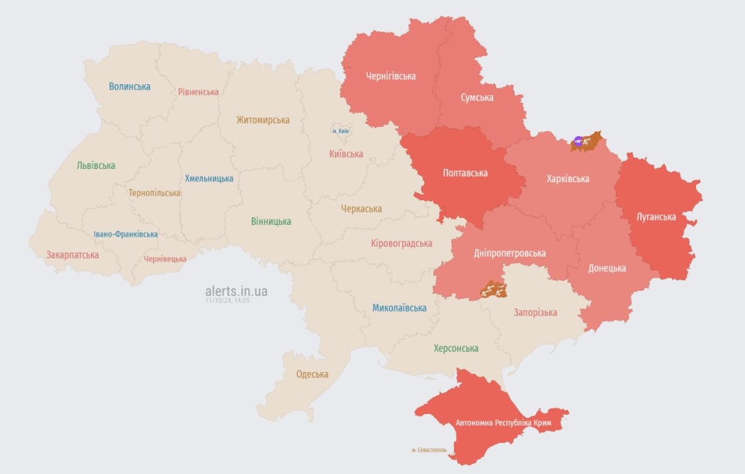Як передає Укрінформ, про це свідчать дані Мапи тривог України.