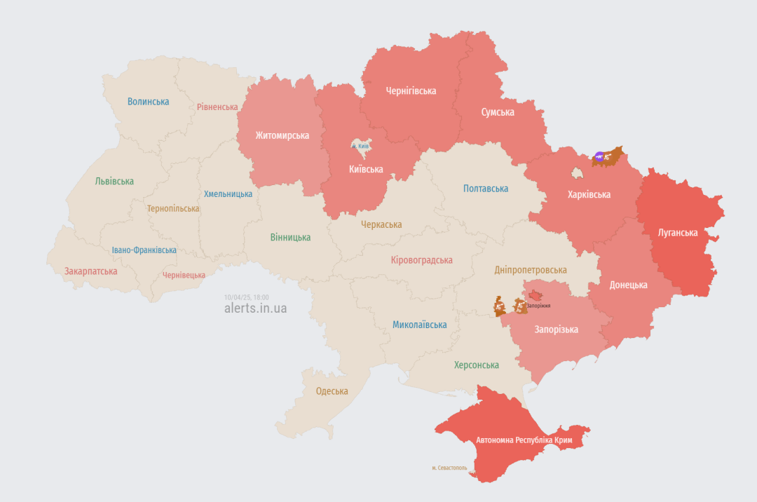 О 17:58 по Києву оголосили відбій загрози, у решті регіонів повітряна тривога залишилася.