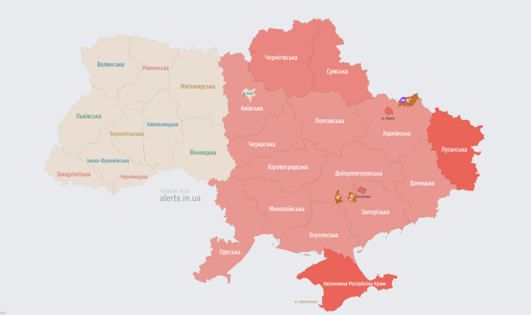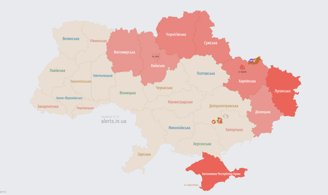 У низці областей України оголошена повітряна тривога.