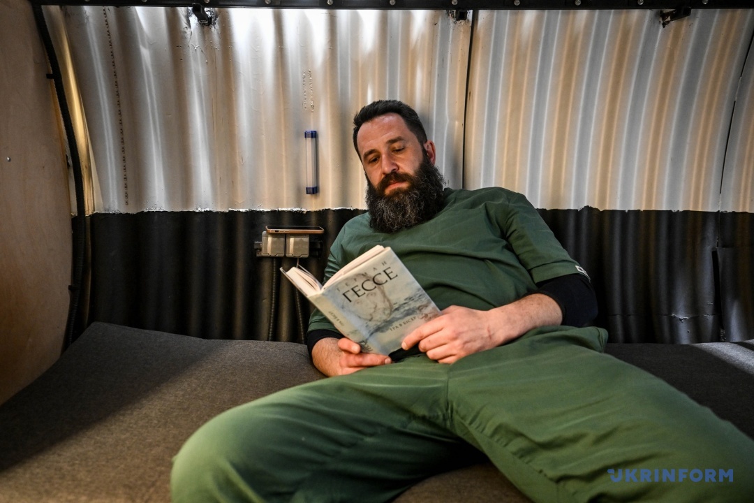 «Весь шпиталь – це наше робоче місце. Тут усе облаштовано, як треба. Кожен стіл… бачив важких пацієнтів, було таке, що через велику кількість поранених всі ми працювали одночасно. Доставляли до нас і з пошкодженням сонної артерії. При такій травмі людина швидко втрачає кров… ми врятували», – каже «Сергійович» та додає, що тут, під землею, вони мають усе необхідне, аби надати першу ургентну допомогу.