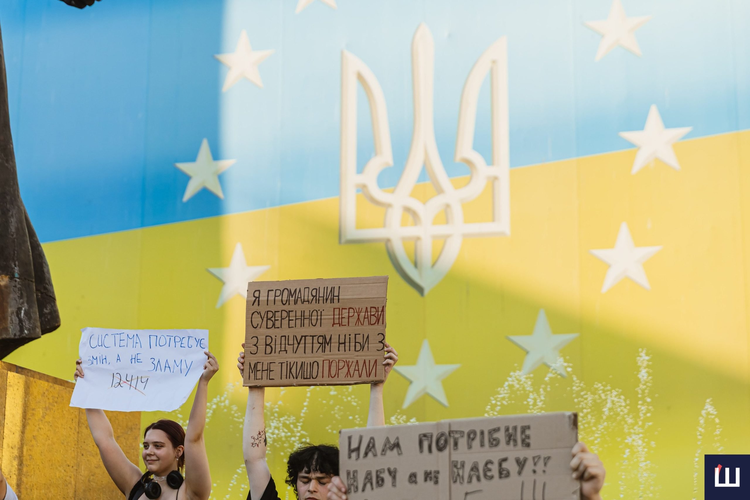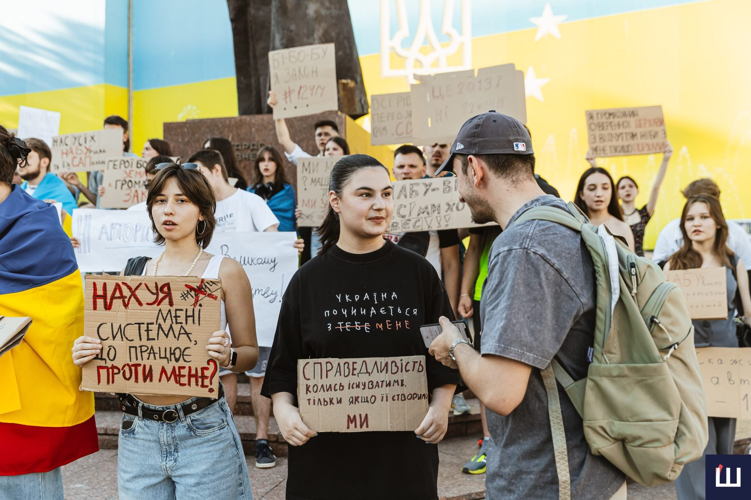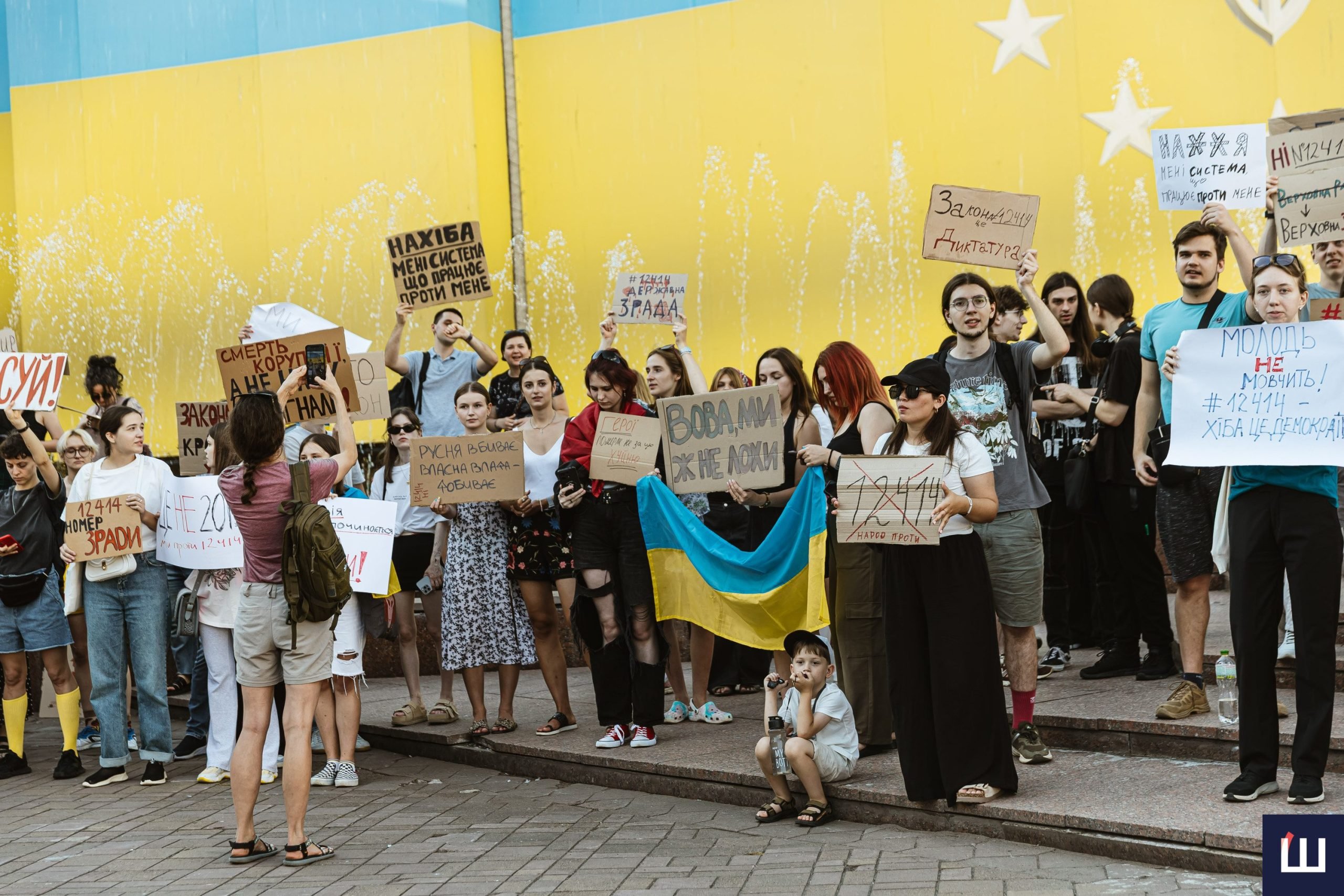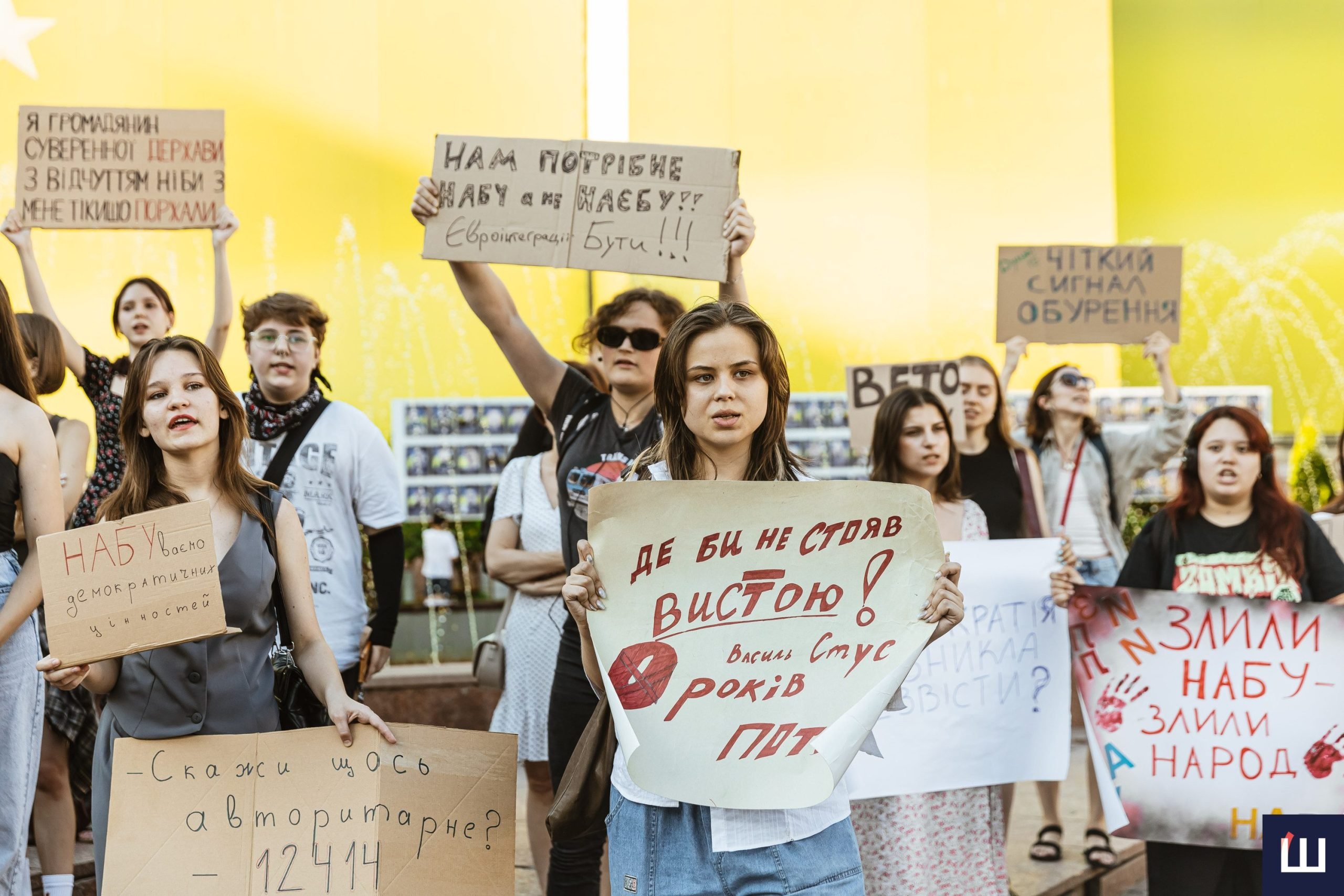 Протестувальники вигукували гасла «незалежність НАБУ та САП», «ні – закону №12414», «жодних рішень без народу», «демократія – це не декорація» та інші.
