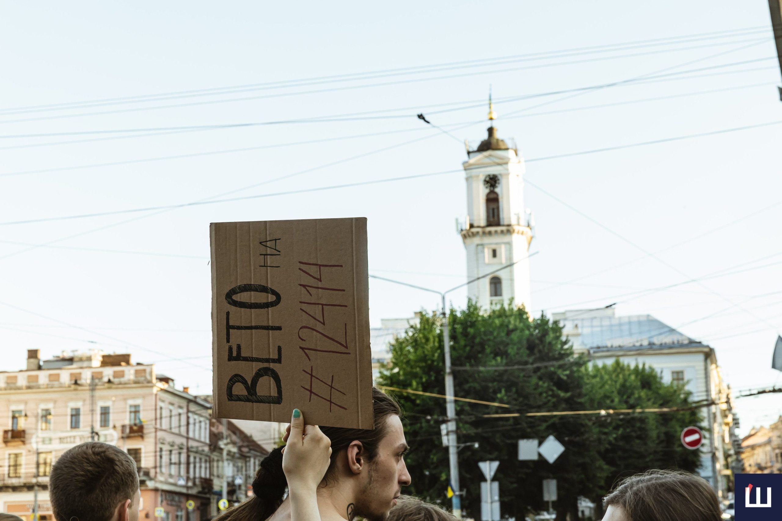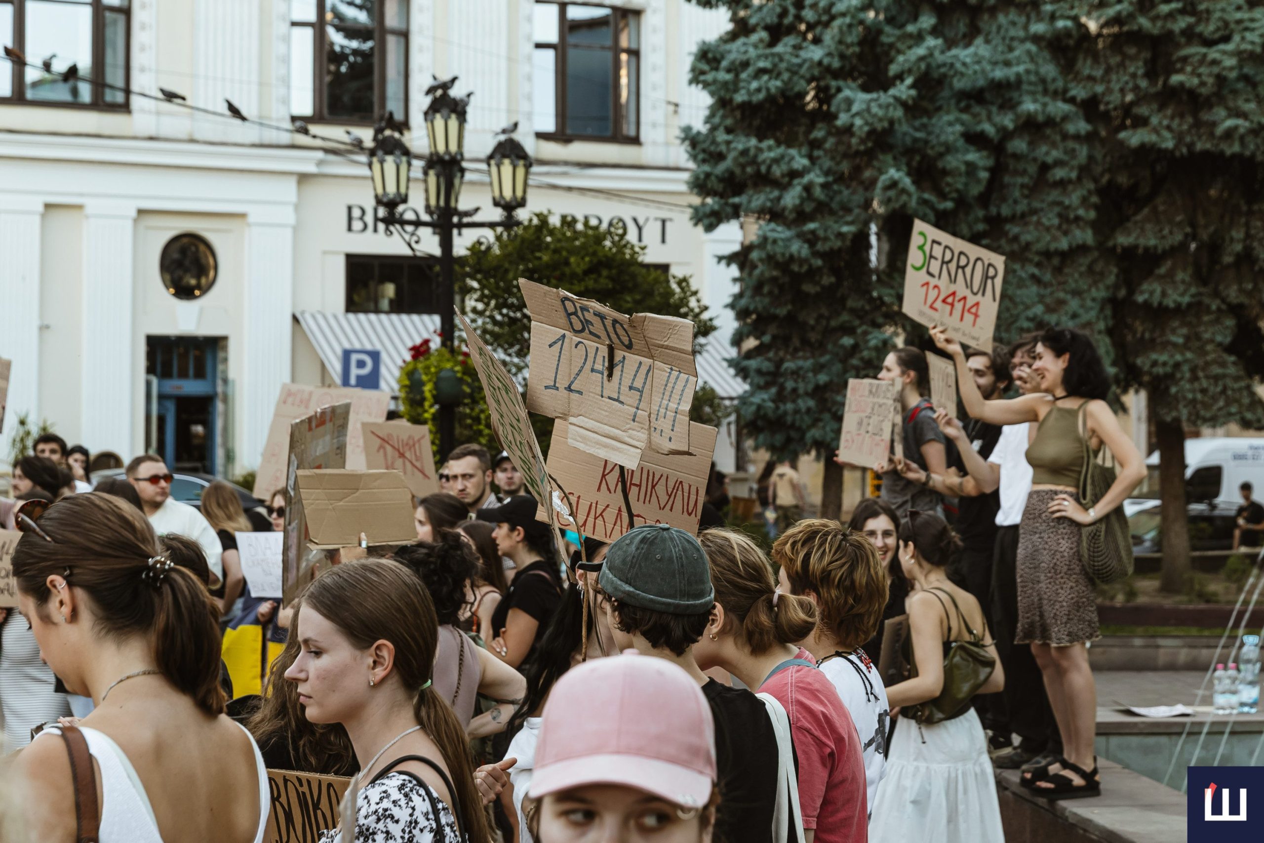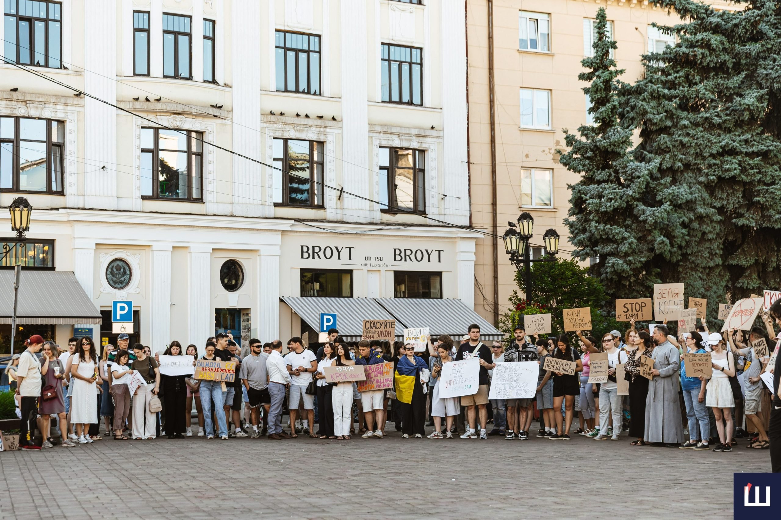 До протесту долучилося понад півтори сотні людей. Мітинг у Чернівцях є частиною всеукраїнської хвилі протестів проти закону №12414, що ухвалили 22 липня.