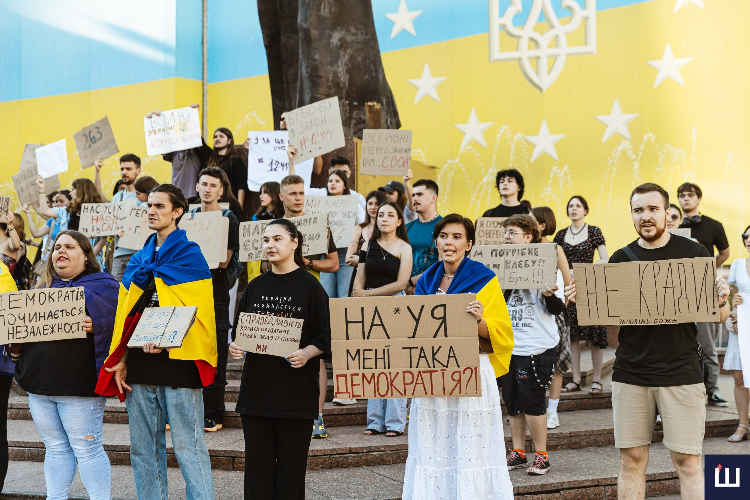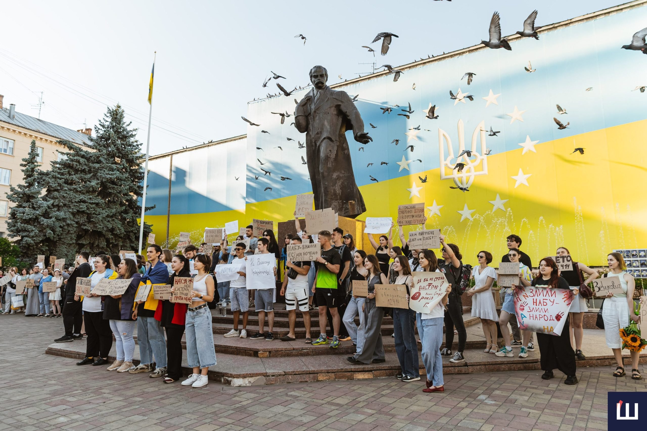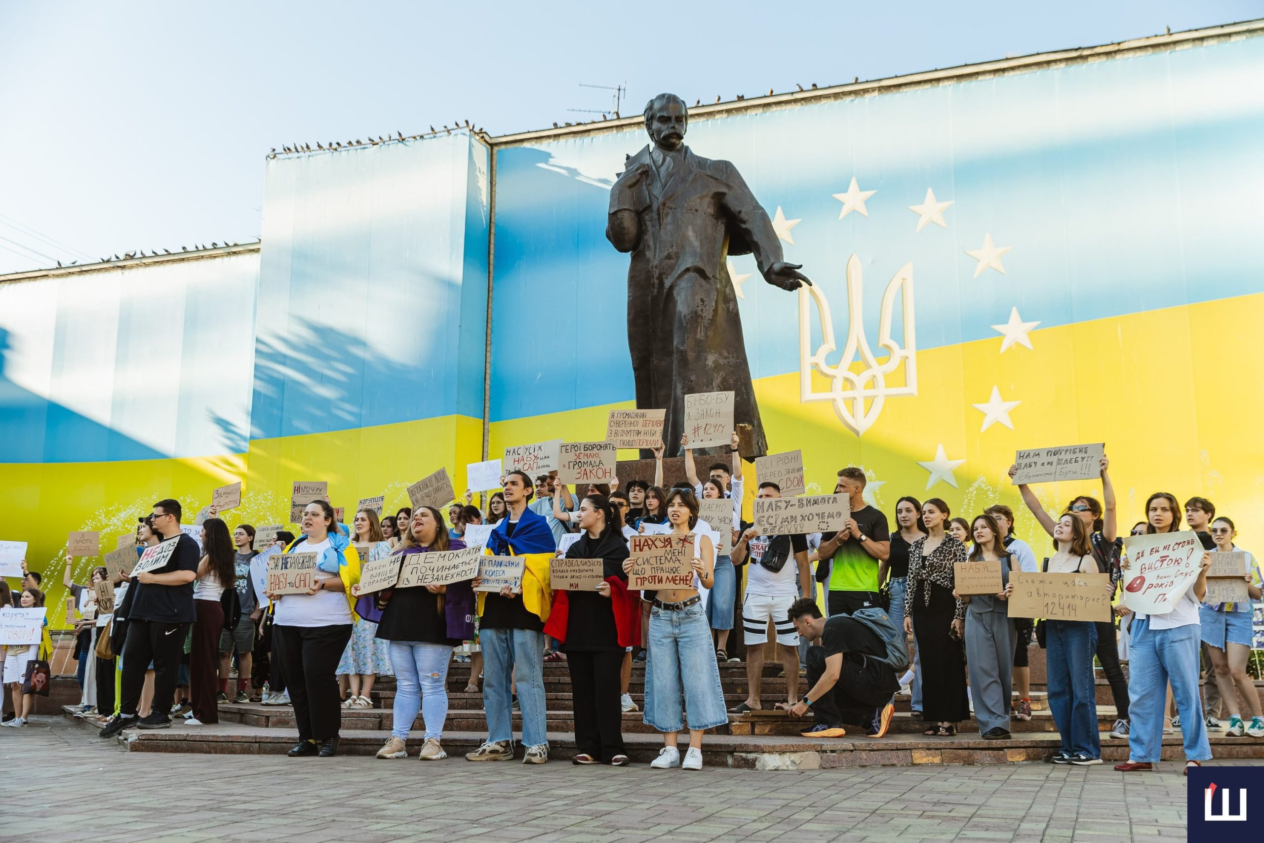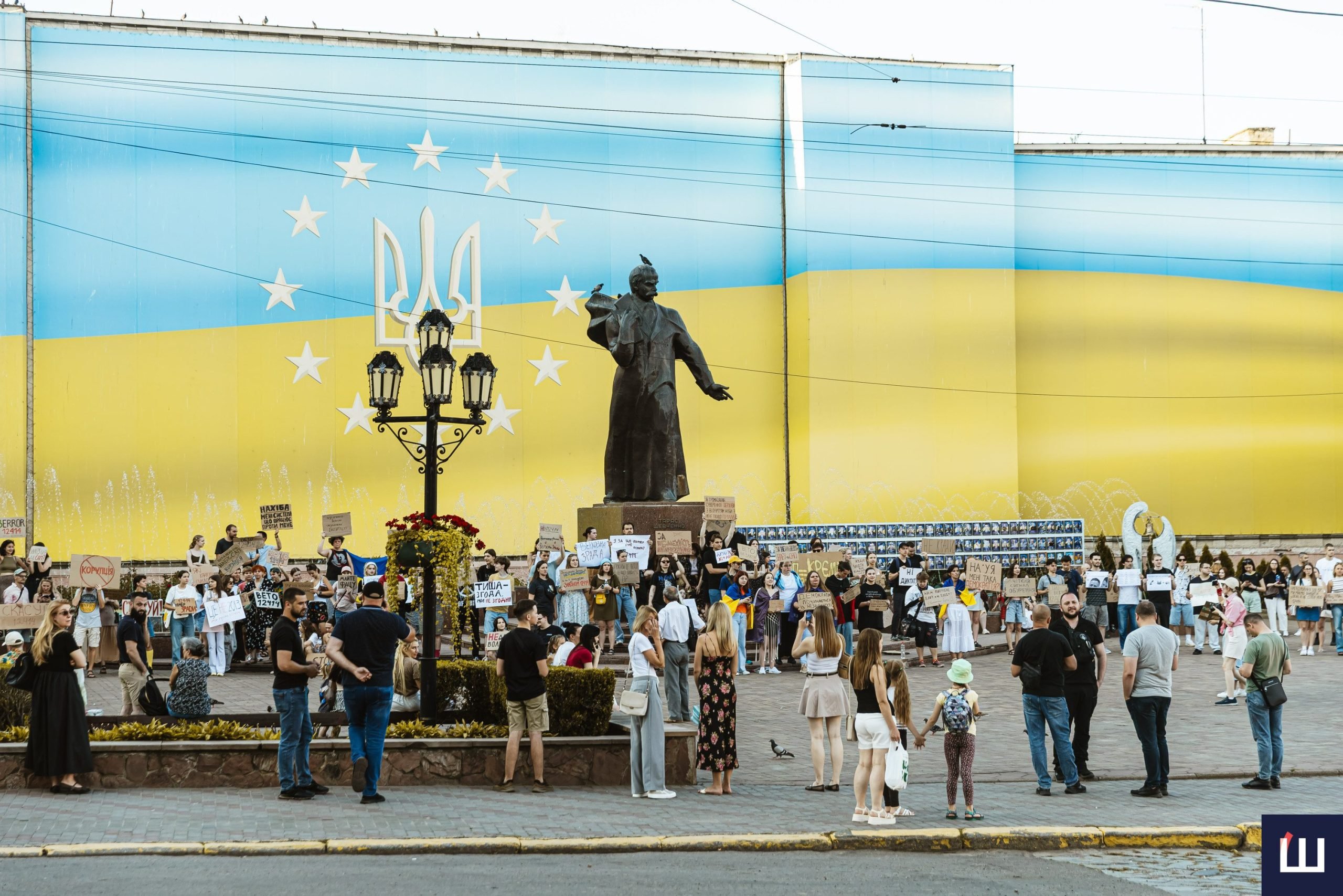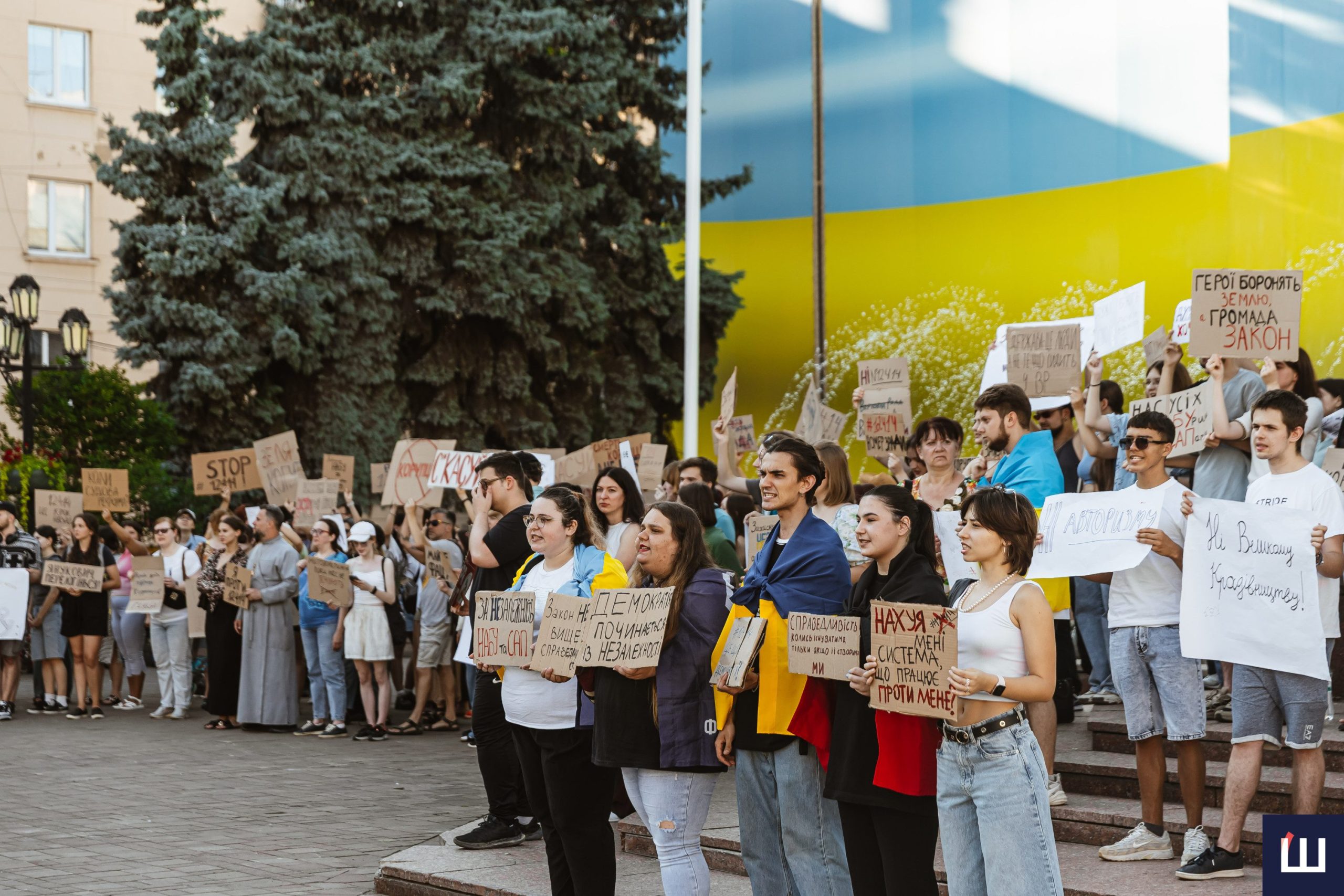 У Чернівцях 23 липня вдруге відбувається мирний протест проти закону №12414, який обмежує повноваження Національного антикорупційного бюро та Спеціалізованої антикорупційної прокуратури та підпорядковує їхню діяльність генеральному прокурору.