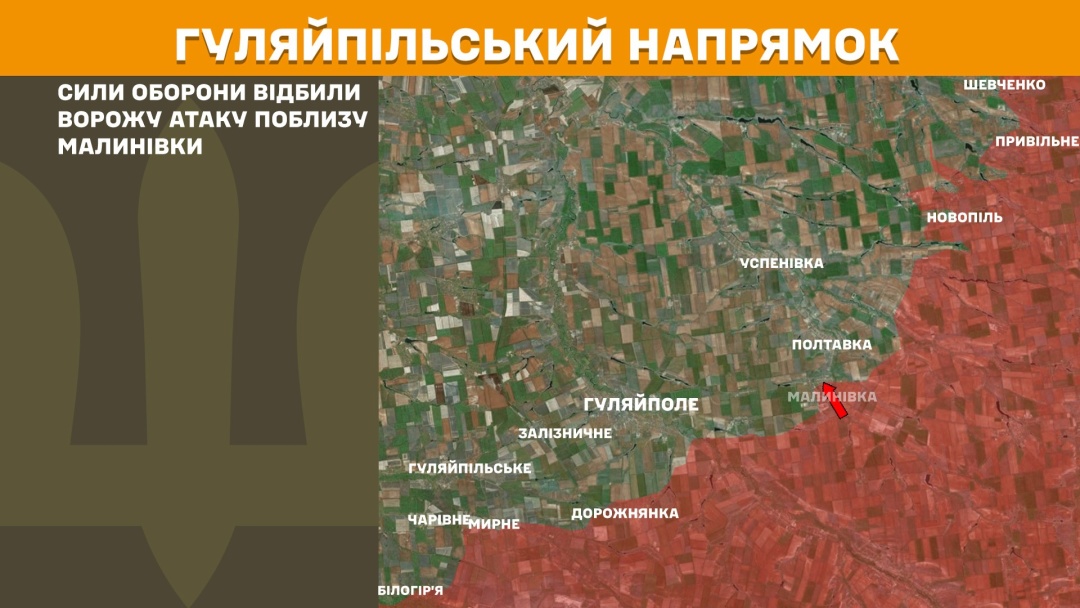 На Гуляйпільському напрямку Сили оборони відбили ворожу атаку поблизу Малинівки.