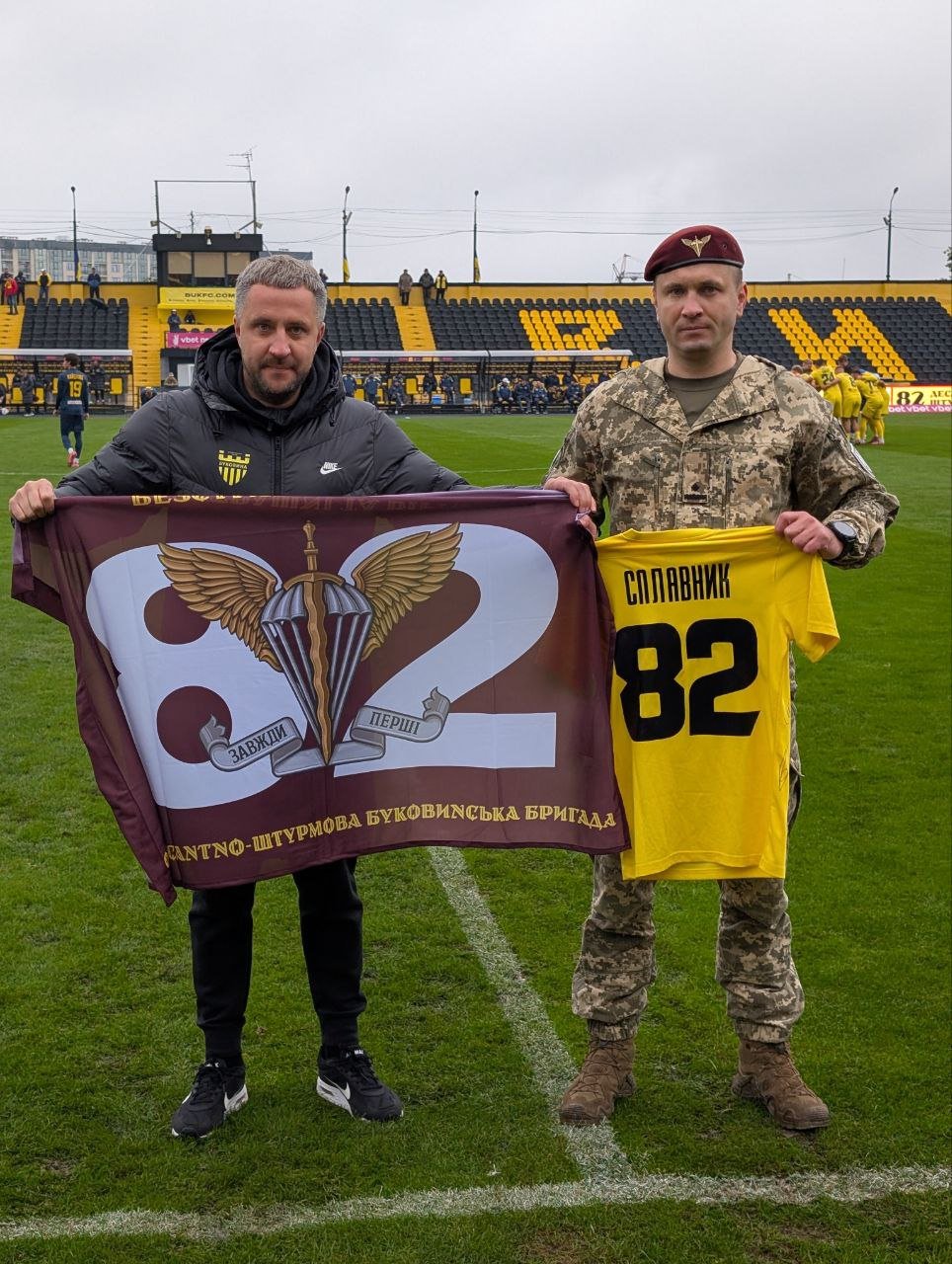Перший символічний удар по м’ячу виконав учасник бойових дій російсько-української війни, майор 82-ї окремої десантно-штурмової Буковинської бригади Іван Сплавник.