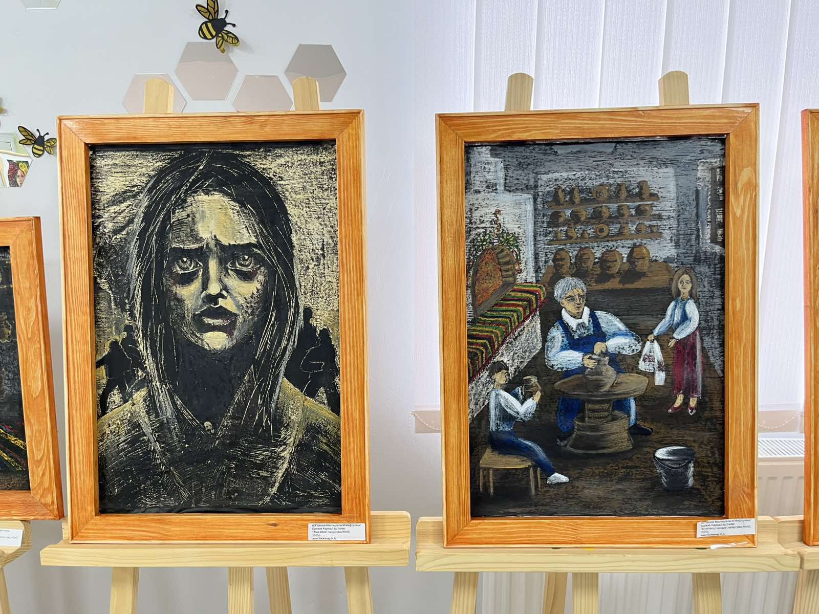 Як зазначає пані Наталія, Каріна навчається в художній школі вже шостий рік. «Дуже працьовита та цілеспрямована дівчинка. На початку навчання вона малювала образи героїв до улюблених творів, потім звернулася до природи і малювала пейзажі, сповнені світла і гармонії. Також є серія патріотичних зображень, де відчувається біль за Україну, за долю її народу.