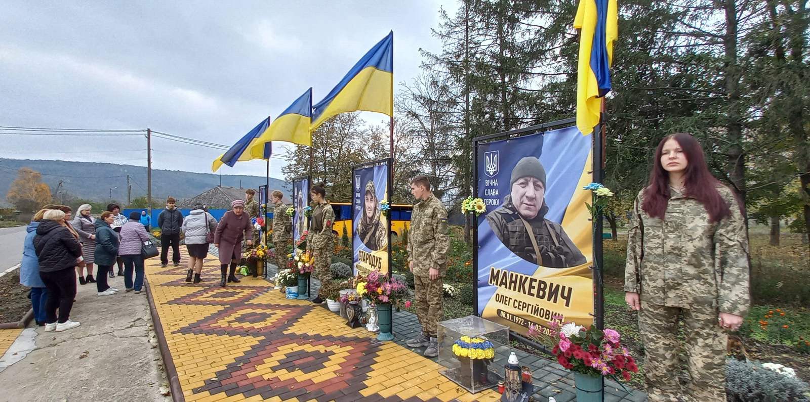 У селі Ожеве вже майорять синьо-жовті стяги над світлинами полеглих воїнів — Олега Манкевича, Олексія Гимлюка, Андрія Малованюка, Миколи Стародуба.
