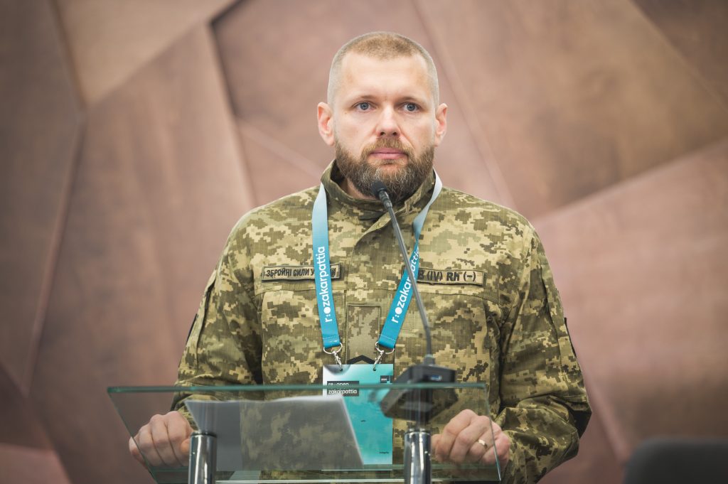 Відкрив форум науковець, доброволець, військовослужбовець самохідного артилерійського дивізіону 128 окремої гірсько-штурмової бригади із Закарпаття Віктор Трошкі.