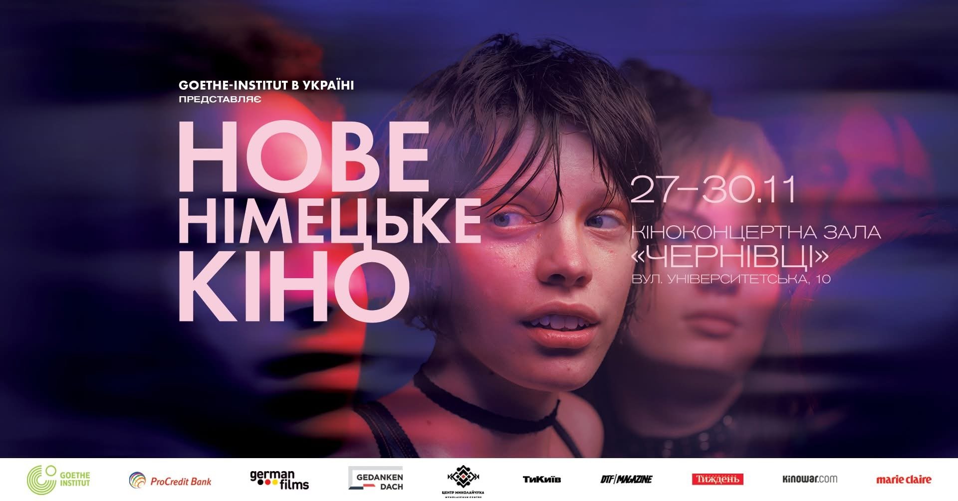 До Чернівців наприкінці листопада знову повертається один із найстаріших кінофестивалів України. З 27 по 30 листопада в Кіноконцертній залі «Чернівці» відбудуться покази 31-го фестивалю «Нове німецьке кіно», що традиційно презентує українській аудиторії найпомітніші прем’єри сучасного європейського кінематографу.