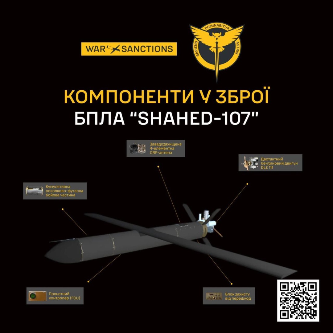 ГУР на порталі War&Sanctions публікує будову, складові частини та іноземну елементну базу БПЛА Shahed-107.