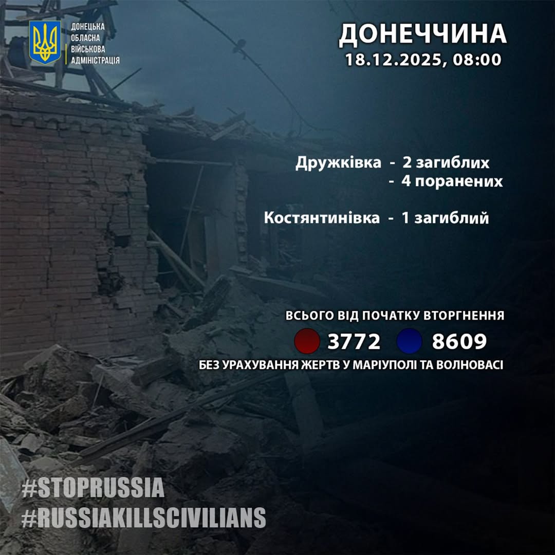 За його словами, 17 грудня росіяни вбили двох людей у Дружківці та одну людину в Костянтинівці. Ще четверо людей в області дістали поранення.