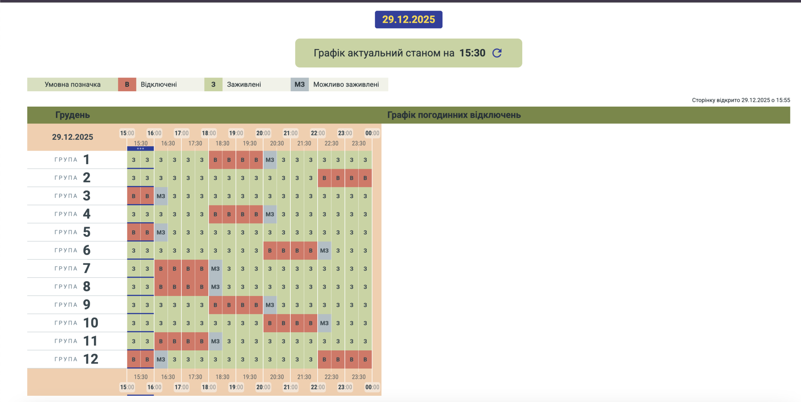 Раніше в графіках одразу показували всі 24 години доби — незалежно від того, який час уже минув. Відтепер система автоматично прибирає години, що вже завершилися, залишаючи на екрані лише актуальні періоди можливих відключень.