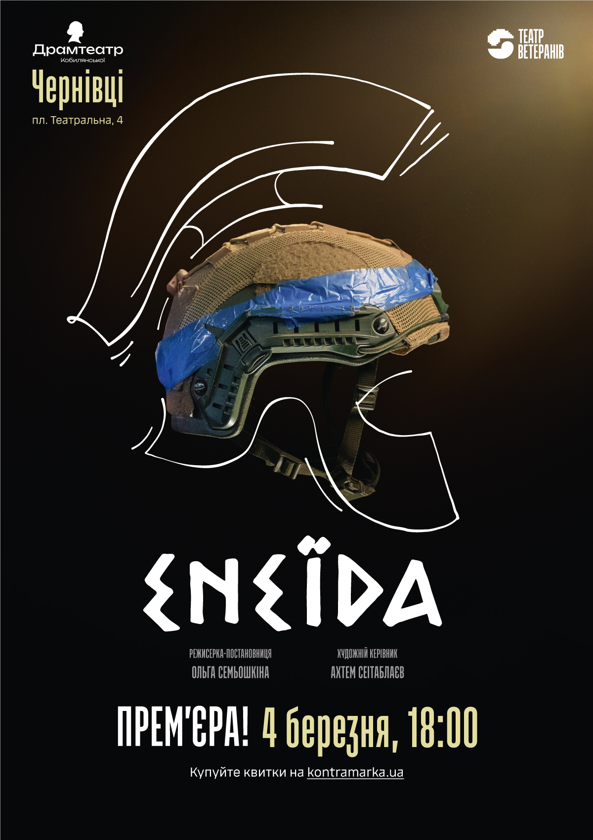 4 березня у Чернівецькому музично-драматичному театрі імені Ольги Кобилянської відбудеться національна прем’єра вистави «Енеїда» від «Театру Ветеранів». Початок — о 18:00.
