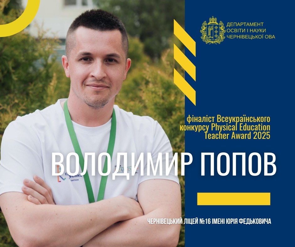 Двоє буковинських педагогів потрапили в фінал всеукраїнського конкурсу для вчителів фізичної культури закладів загальної середньої освіти (Physical Education Teacher Award 2025). Про це написали на офіційній фейсбук-сторінці Департаменту освіти і науки Чернівецької обласної військової адміністрації.