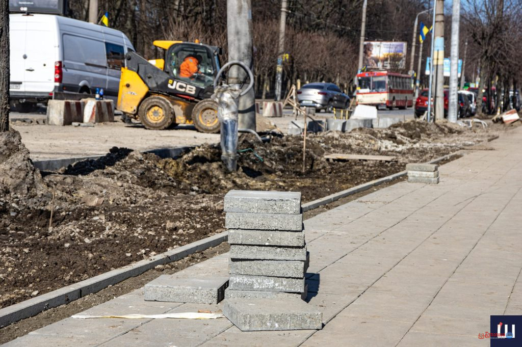 Поступово облаштовують і простір для пішоходів та велосипедистів: уже зробили 344 метри тротуару, 194 метри велосипедної доріжки та стільки ж газону.