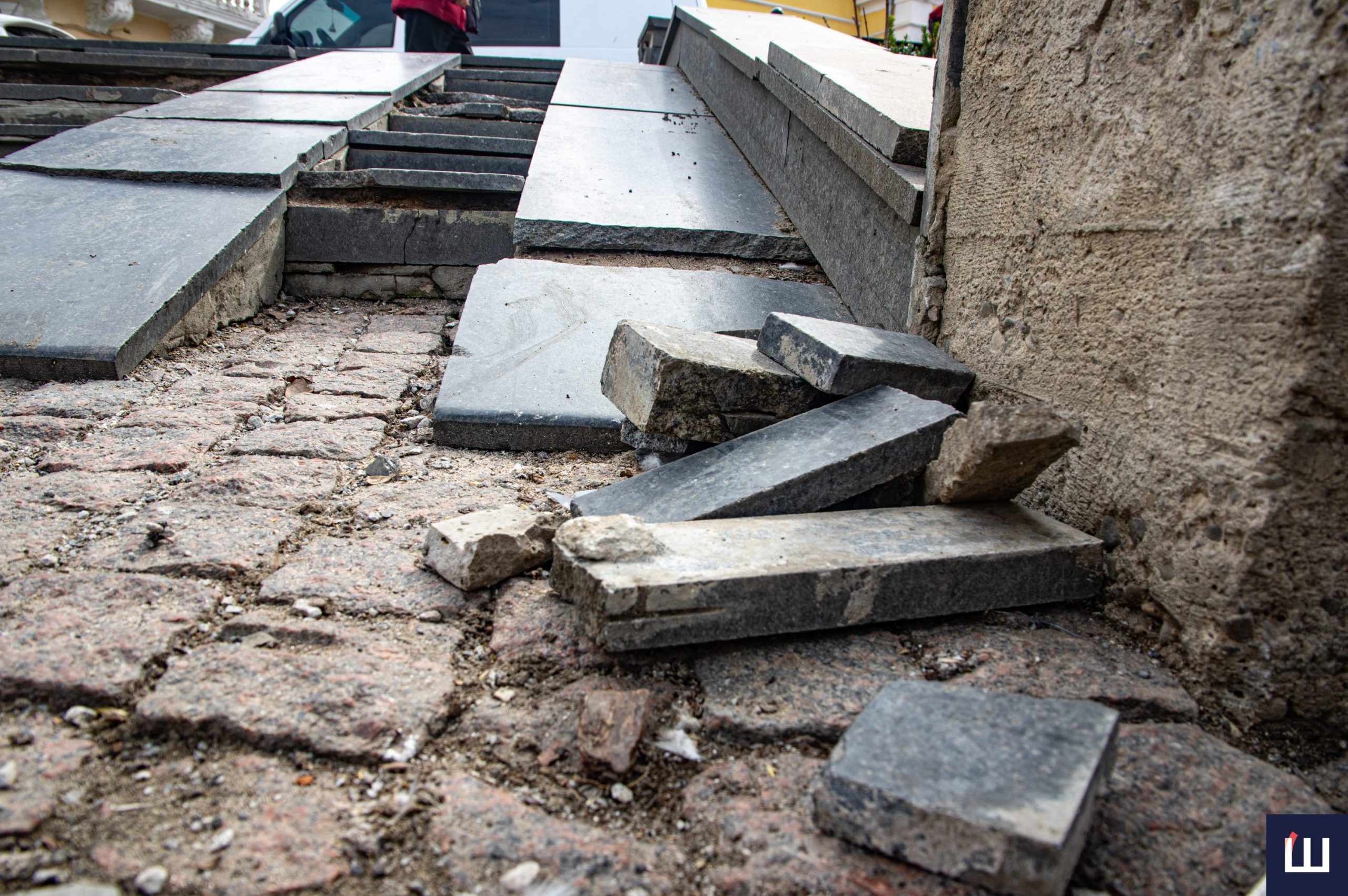У центрі Чернівців, на площі Філармонії, майже повністю зруйновані сходи