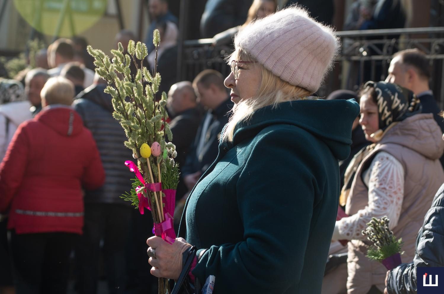 Продавали традиційні гілочки з сірими котиками, молоді пагони з зелено-жовтими суцвіттями та ошатно прибрані букети, з святковими писанками та колоссям.