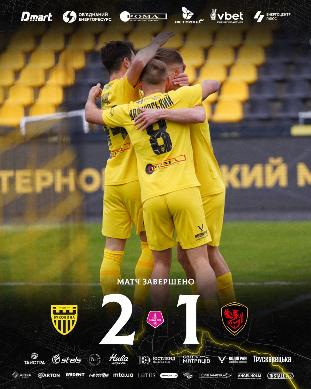Чернівчани перемогли – 2:1.